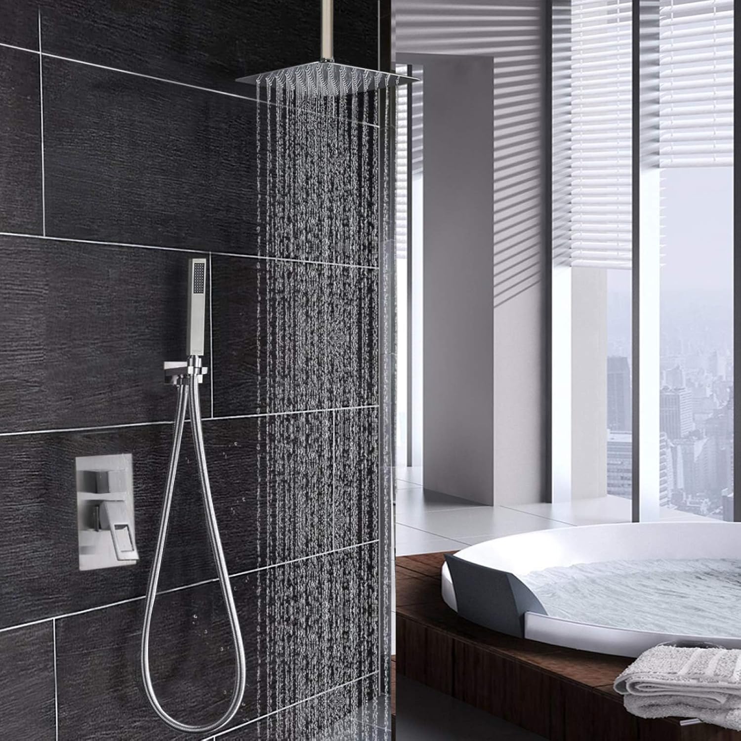 • - Geniessen Sie auch bei niedrigem Wasserdruck einen wunderschönen grossen Regenschauer. - Die Kombination aus ultradünnem Design und Luftansaugtechnologie führt zu hohem Druck und grossen Durchflussmengen Grosse Duschköpfe können Ihnen selbst bei