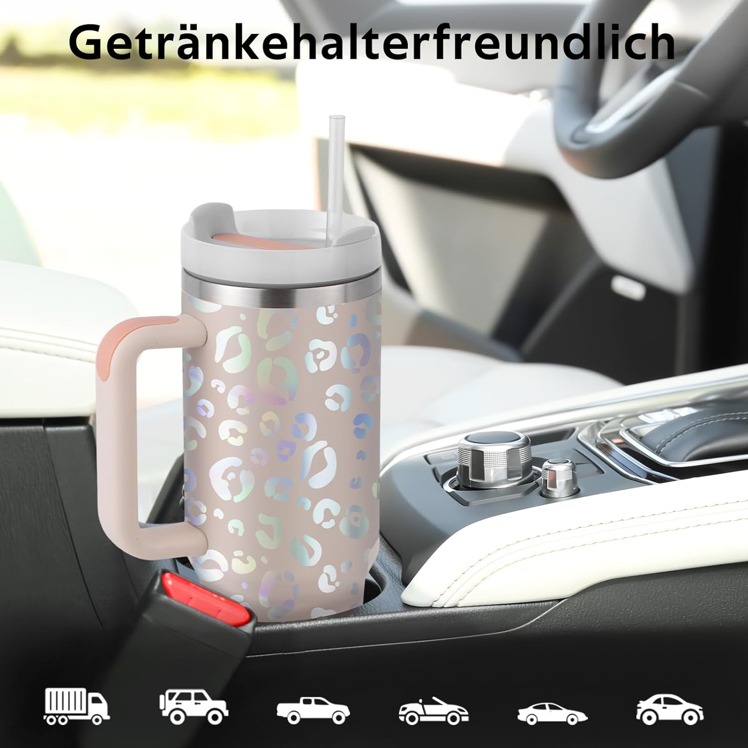 - DER PERFEKTE REISEBEGLEITER: Dieser Trinkbecher mit Deckel und Strohhalm wurde entwickelt, um Ihr Reiseerlebnis angenehmer zu machen und sicherzustellen, dass der isolierte, konische, schmale Boden des Bechers mit Strohhalm und Henkel perfekt passt, egal