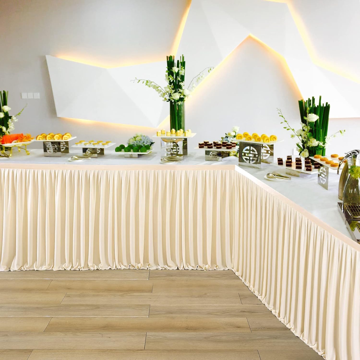 - Weit verbreitet - Elfenbein Tischrock perfekt für Hochzeitsempfang, Messe, Bankett, Messe, Hockeytisch, Verkäufertisch und so weiter, Tischrock für Rechtecktisch ist flexibel und kann für eine Vielzahl von Anwendungen verwendet werden.