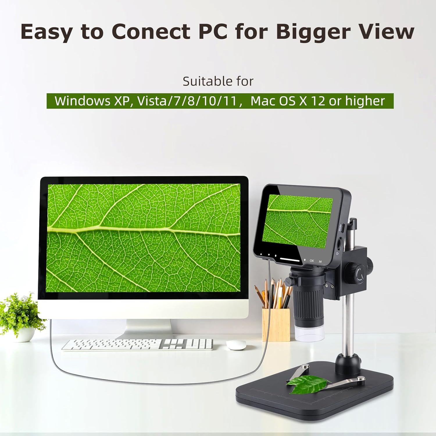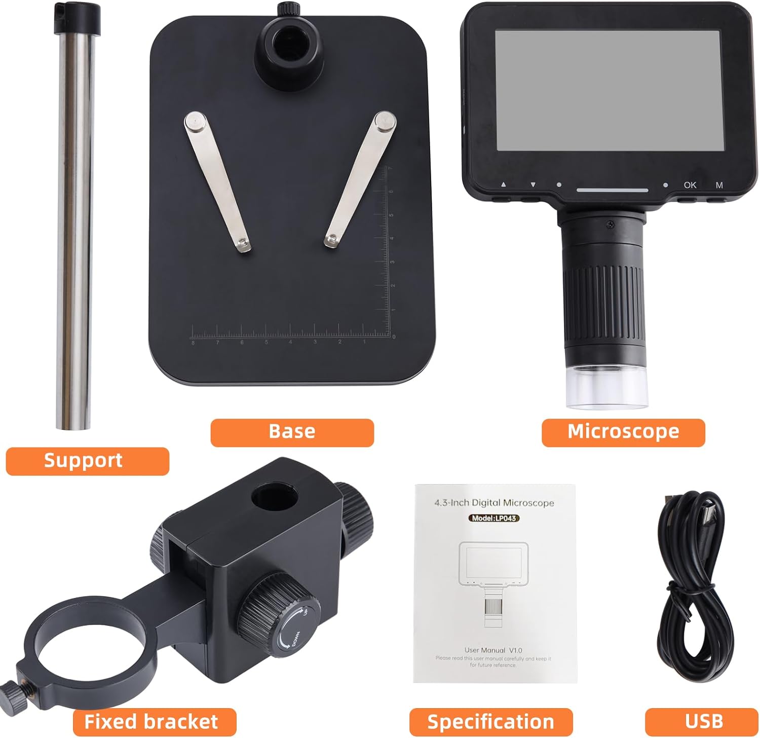 • 【4,3-Zoll-HD-IPS-Display】 Das neu verbesserte digitale Mikroskop mit IPS-Display bietet klarere Farben und Details als herkömmliche LCD-Displays. Der Vergrösserungsbereich reicht von 10X bis 1000X und die echte 720P-Auflösung. Eingebaute