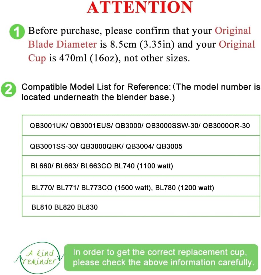 - Die Modellnummer befindet sich unter der Basis des Mixers und muss mit BL beginnen: BL660/ BL740 (1100 Watt), BL770/ BL771/ BL773CO (1500 Watt), BL780 (1200 Watt), BL810 BL820 BL830. Die Tassen sind mit allen oben genannten Modellen kompatibel.