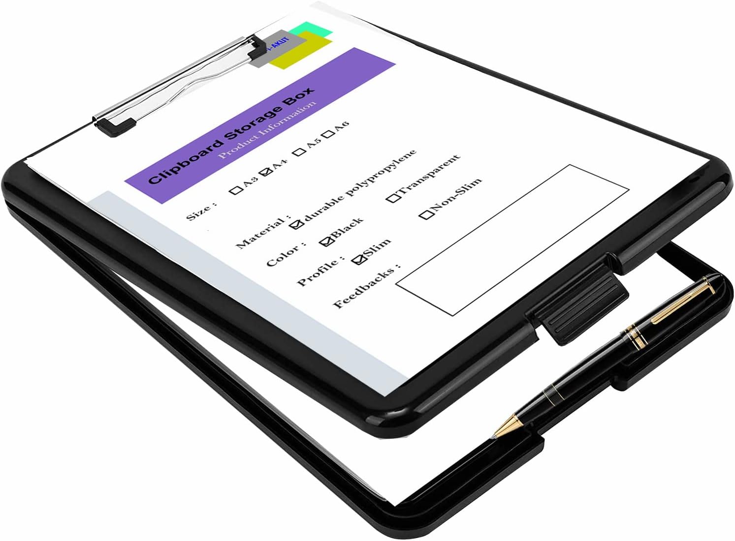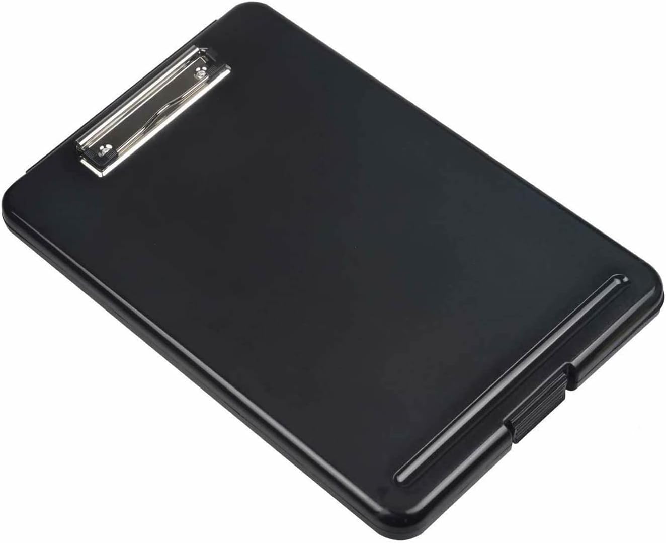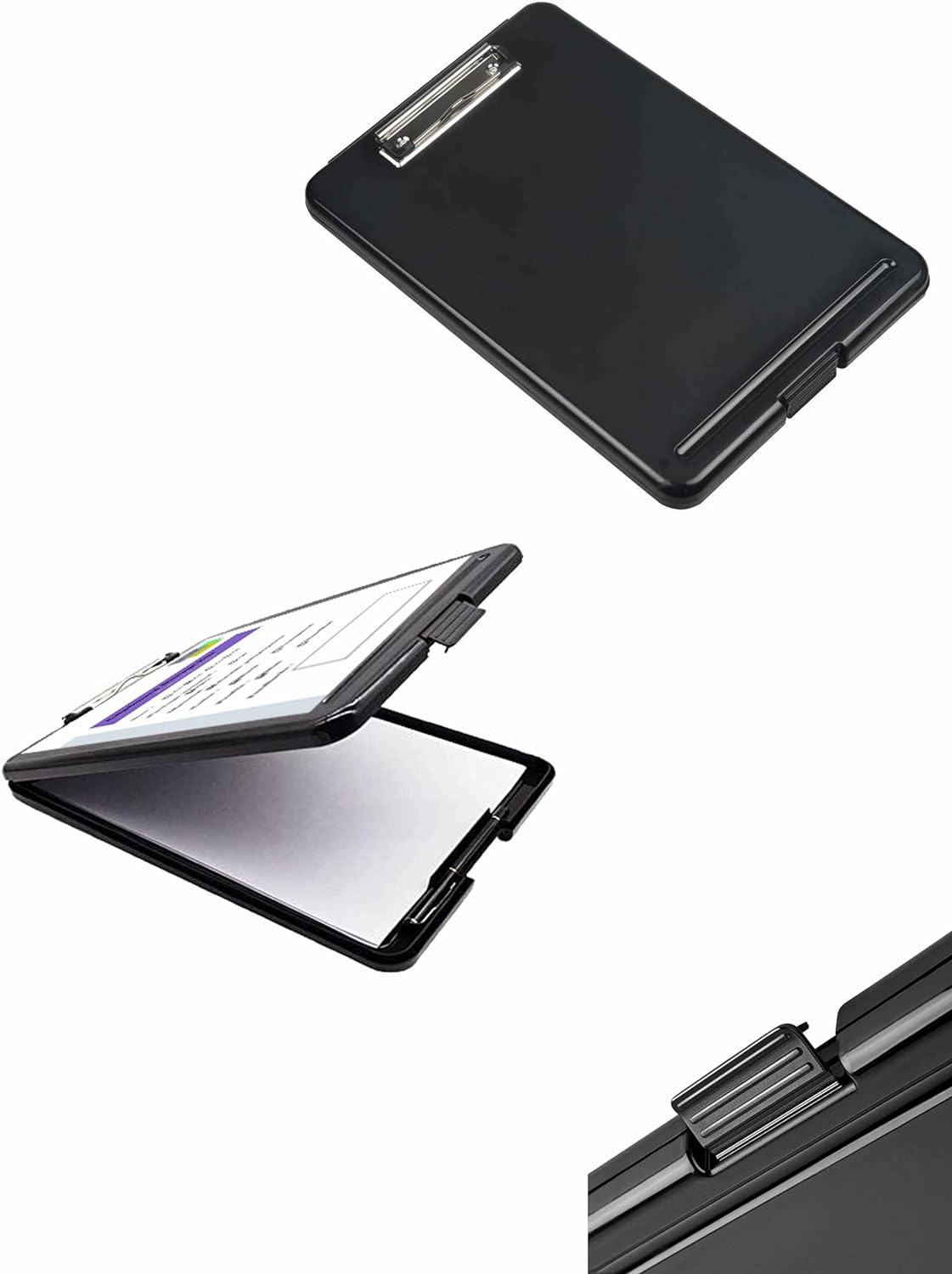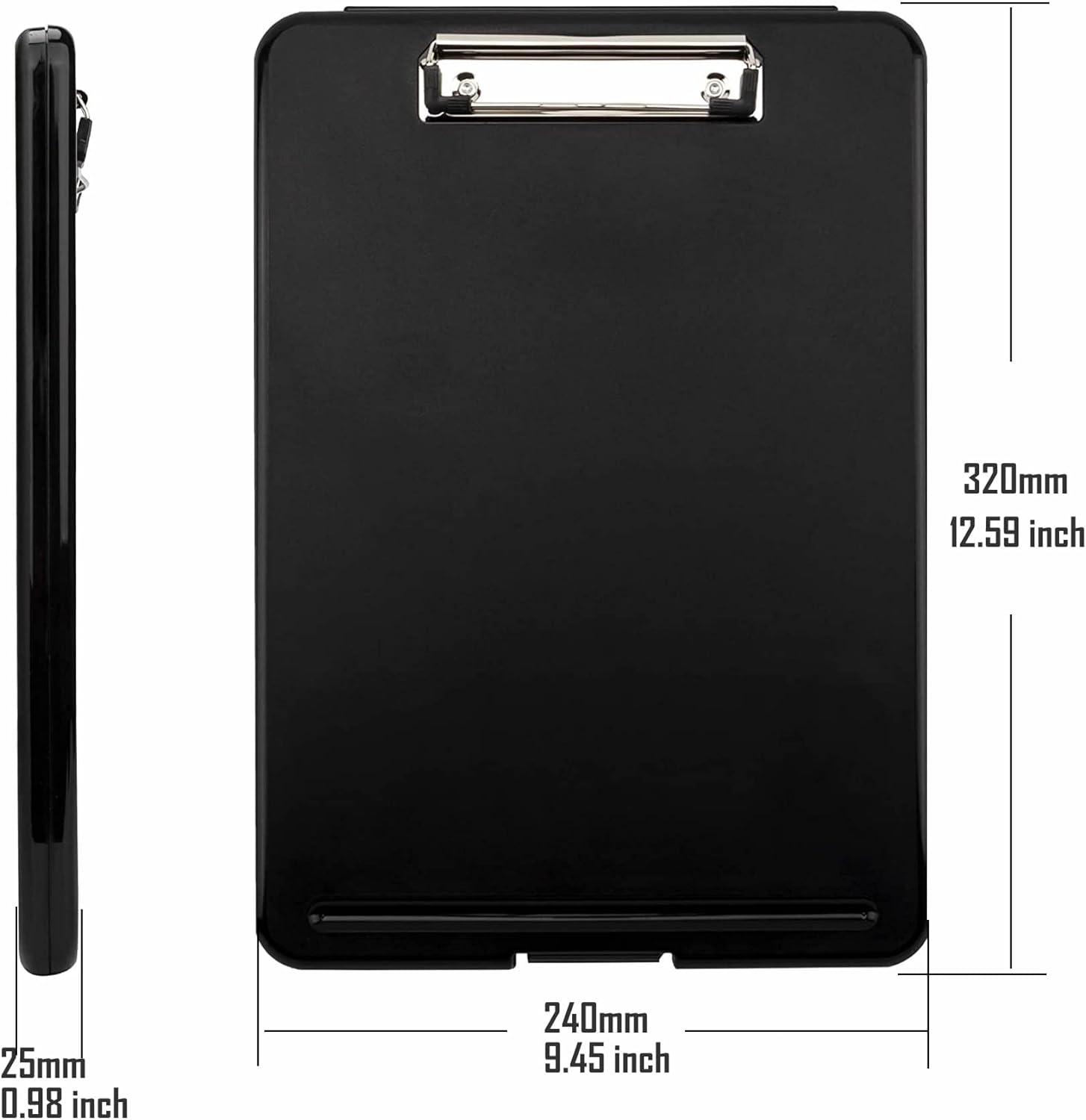 - [ Tragbares Klemmbrett mit Aufbewahrung ] Als eine sehr komfortable Schreibplatte, die Zwischenablage hat starke gummierten Metallklemme + glatte Oberfläche + runde Kanten. Das DIN A4 Aufbewahrungsfach mit flexibler Verriegelung lässt sich bei der