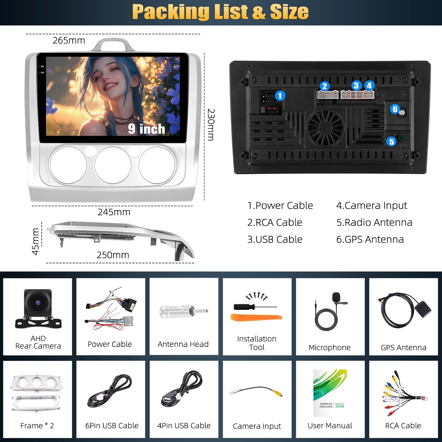 - 【Autoradio für Ford Focus Mk2/Mk3】Doppel Din Autoradio mit 9-Zoll-Bildschirm, Android 15, 4-Core-Chip, 4GB RAM+128GB ROM.Autoradio für Ford Focus Mk2/Mk3 Exi MT 2 3 (2004 2005 2006 2007 2008 2009 2010 2011).Hinweis: Wenn Sie nicht wissen, ob es ein