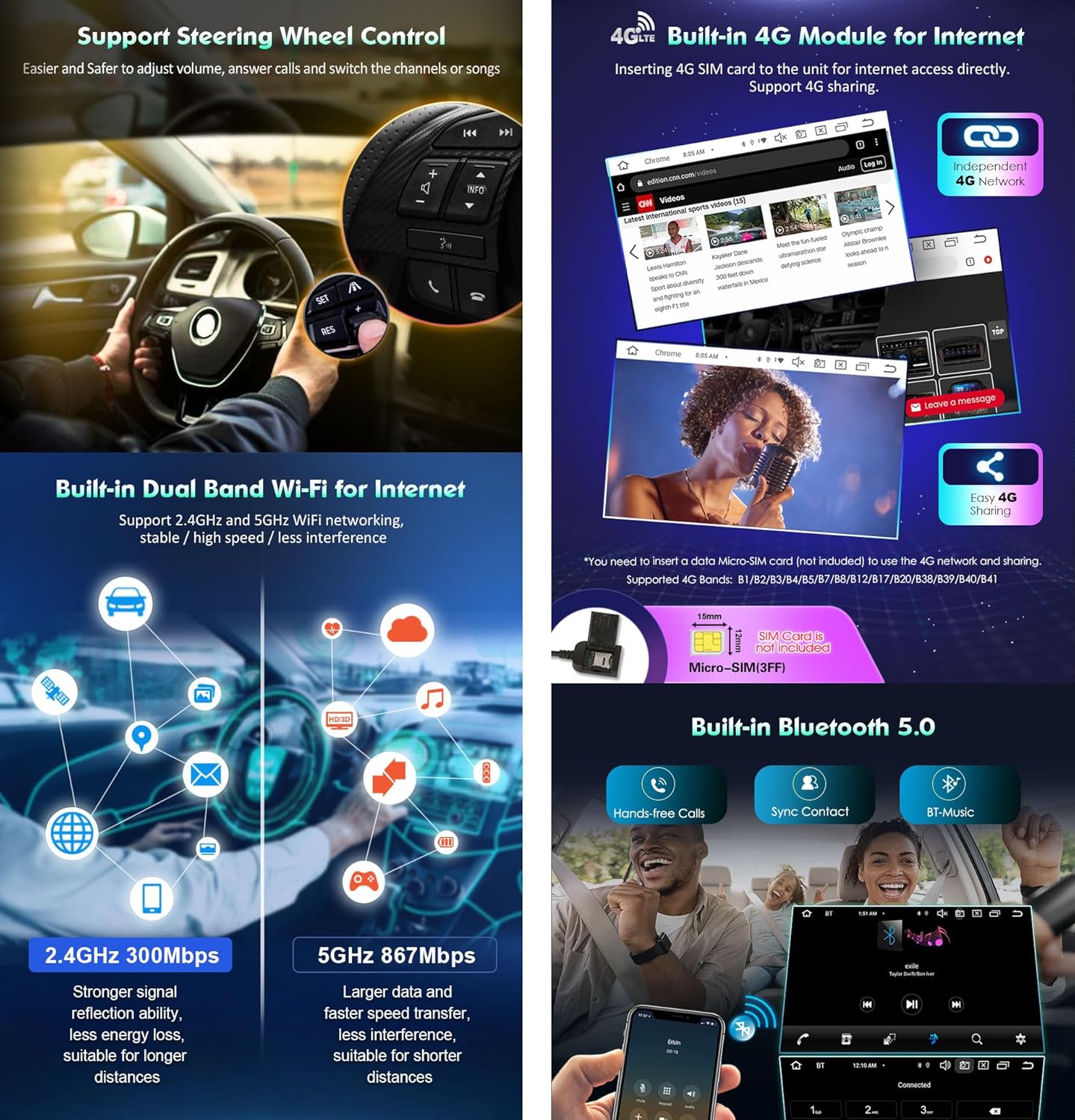 - 【Navigation & 4G & WiFi】✔ Sat Nav/GPS-Navigation vorinstallierte lokale Offline-Karten. Online-Karten werden auch nach einer Internetverbindung unterstützt, Sie können Karten-/Navigations-Apps (iGO, Waze, Sygic, HereWeGo) entsprechend der