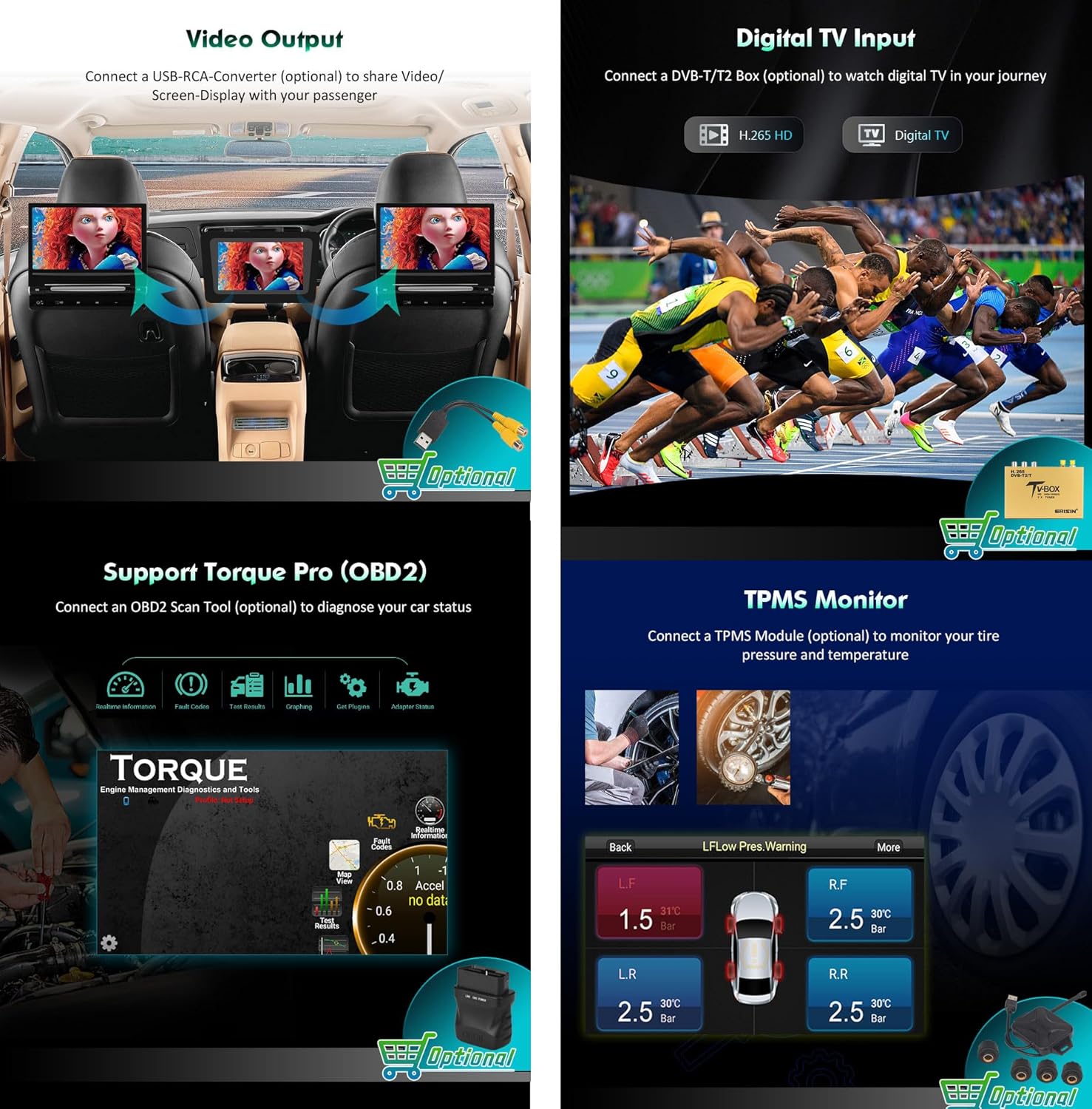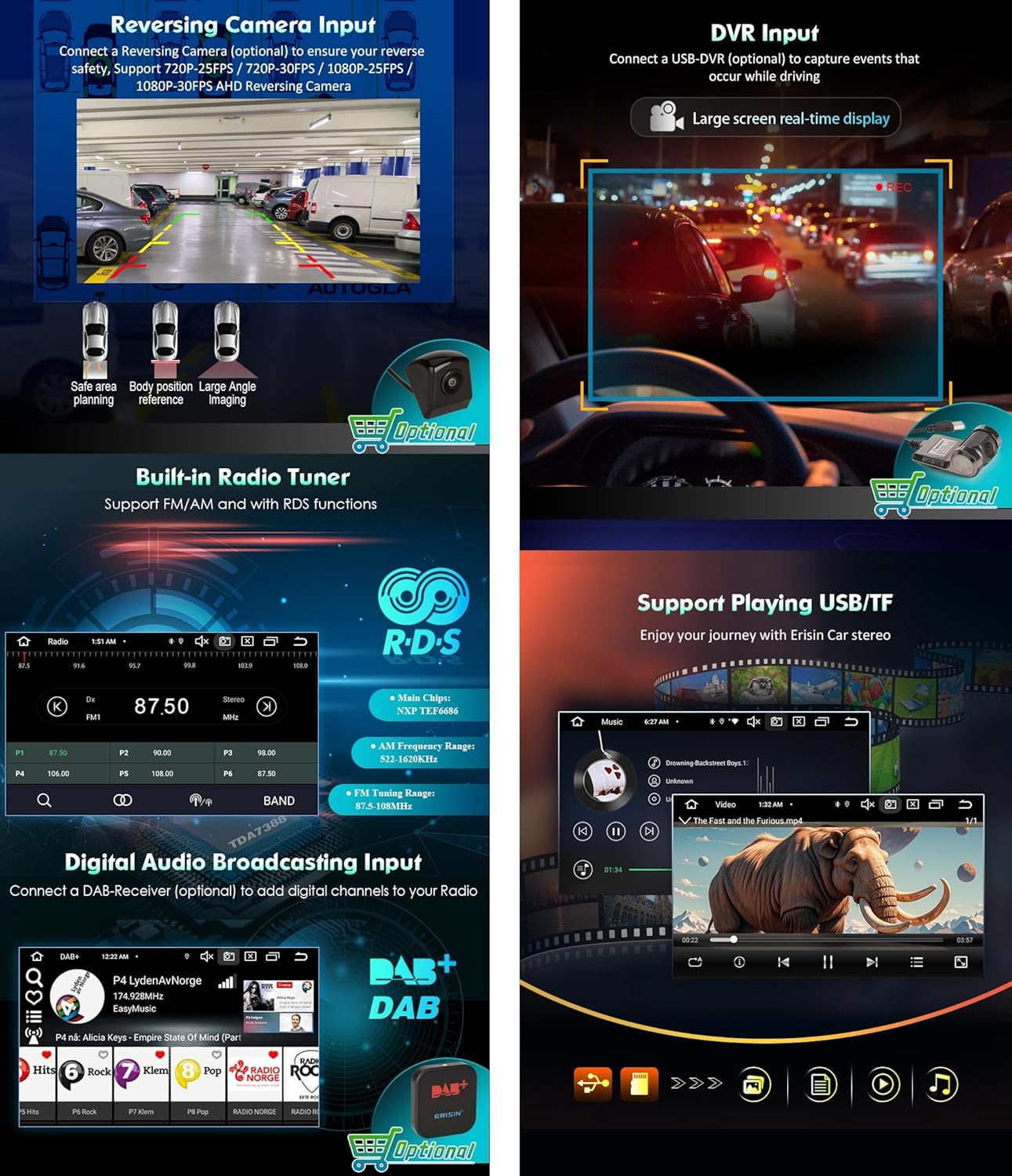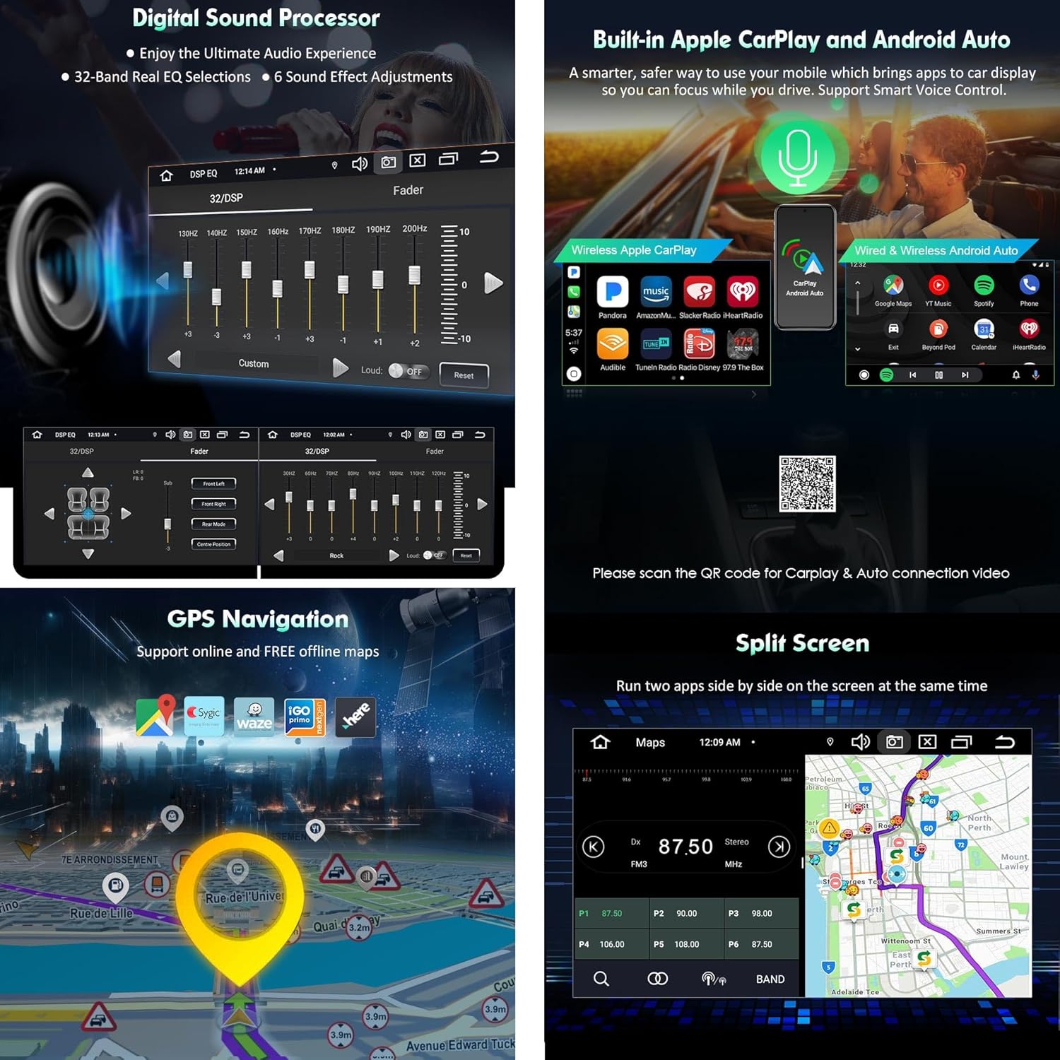 - 【Carpaly & Android Auto & DSP】✔ Verwenden Sie Carplay per Bluetooth, Android Auto per Bluetooth/USB-Verbindung, Zugriff auf GPS, Anrufe, Musik von Smartphones auf dem Autoradio-Grossbildschirm, machen Sie Ihr Fahren einfacher und sicherer. ✔