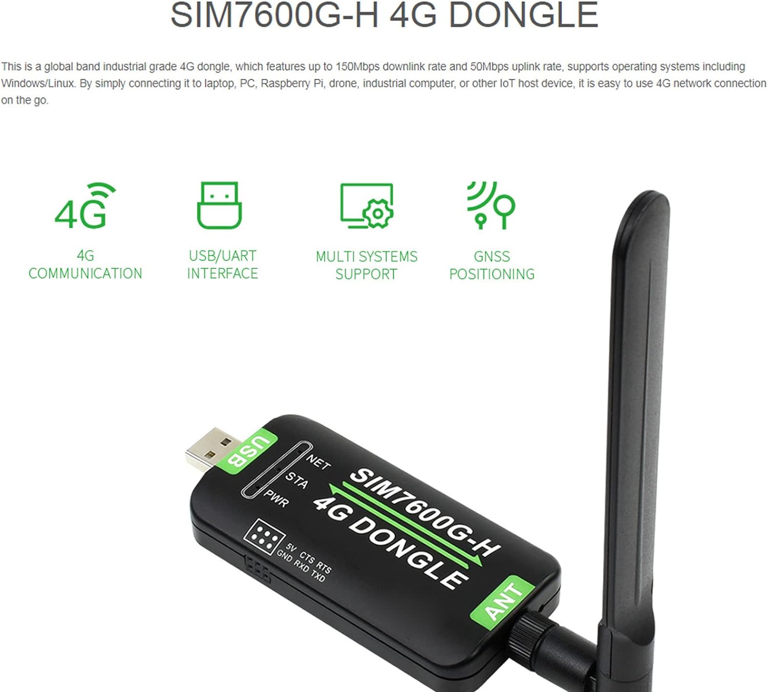 • ANWENDUNG: Der SIM7600G-H 4G DONGLE kann für industrielle Computernetzwerke, PC-Internetzugang, gemeinsam genutzte/unbemannte Selbstbedienungsgeräte, Open-Source-Hardware-Netzwerke und das industrielle Internet der Dinge verwendet werden.