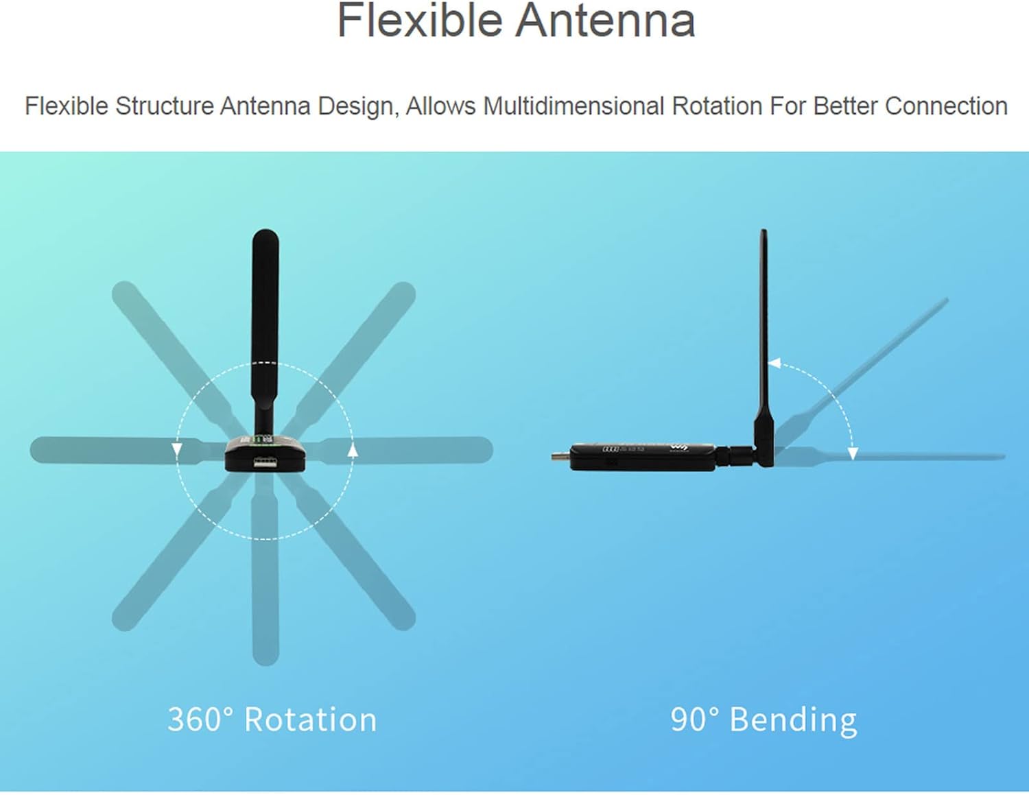 • DREHBARE ANTENNE: Die Antenne hat ein flexibles Strukturdesign und unterstützt eine mehrdimensionale freie Drehung. Benutzer können je nach Nutzungsgewohnheiten und Signalstärke Anpassungen vornehmen, um die Signalempfindlichkeit zu verbessern.
