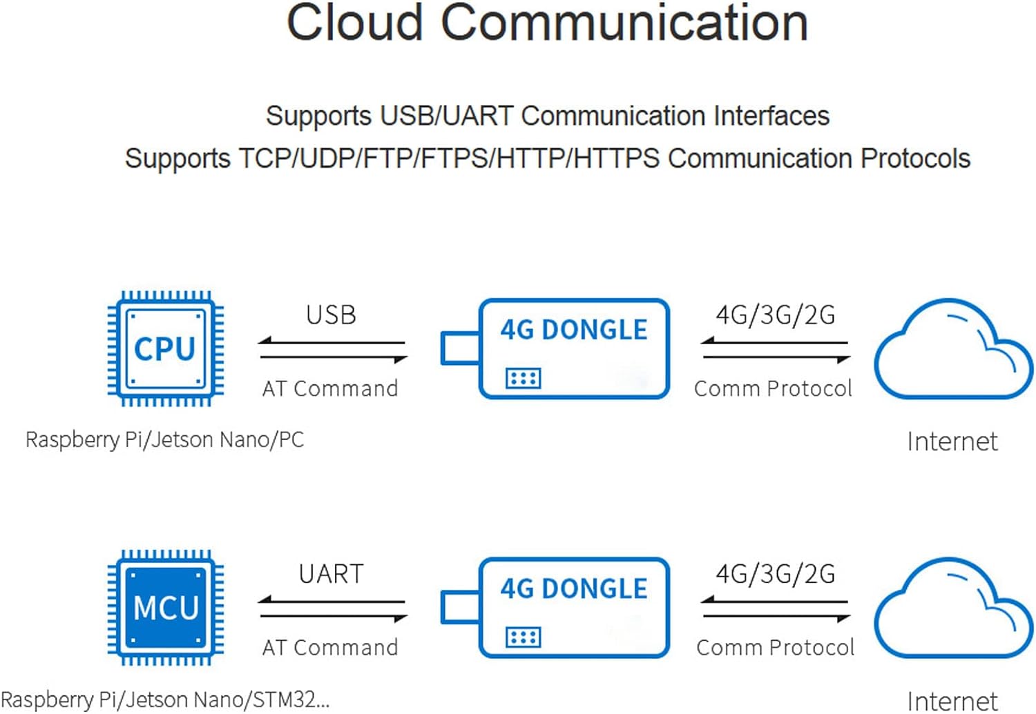 • 2 SCHNITTSTELLENKOMMUNIKATION: Das 4G DONGLE-Modul unterstützt die Cloud-Plattform-Kommunikation, unterstützt die USB- und UART-Zwei-Schnittstellen-Kommunikation, unterstützt TCP/UDP/FTP/FTPS/HTTP/HTTPS und andere Kommunikationsprotokolle.