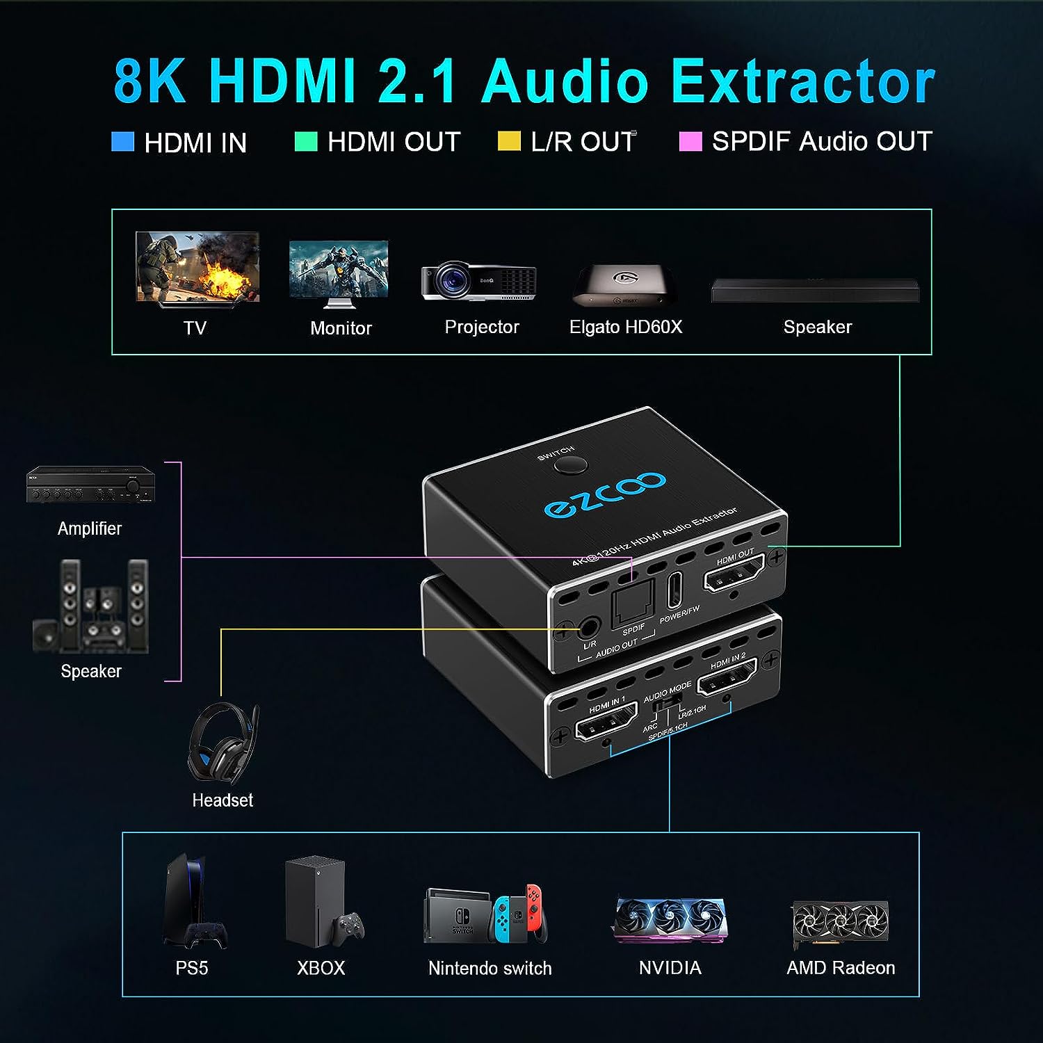 - ✨【AUDIO EXTRACTOR 8K Broad Compatibility】: Dieser 2 Port HDMI 2.1 Audio Extractor kann mit einem Teil der HDMI-Geräte wie Amazon Fire Stick, Apple TV, LE TV, PS5/ 4/ 3 Videospiele, Macbook, VCD/ DVD Player, IP TV, STB, Media Box, Kamera, Xbox360,