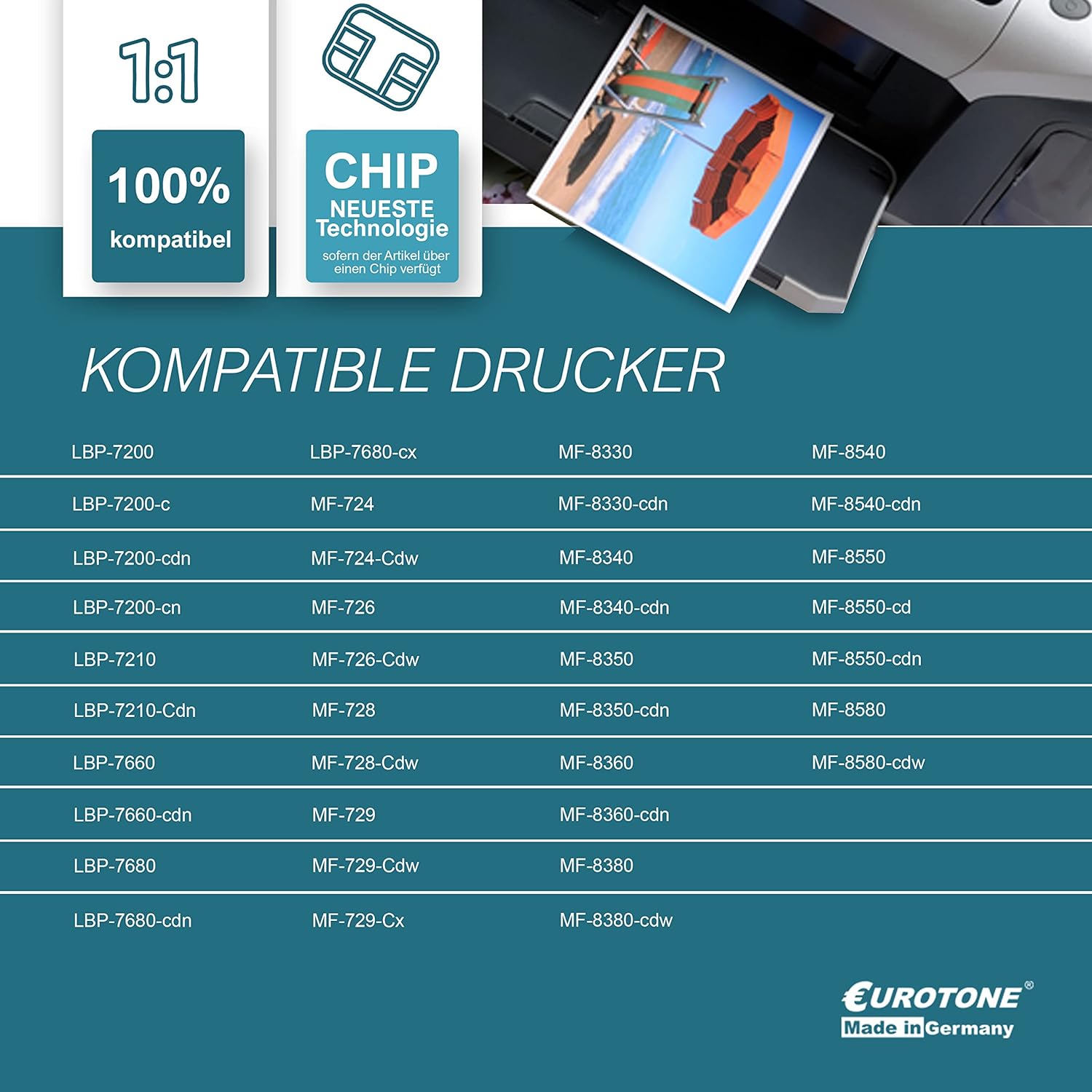 - kompatibel für Canon I-Sensys: MF 724 (Cdw), MF 726 (Cdw), MF 728 (Cdw), MF 729 (Cdw / Cx), MF 8330 (cdn), MF 8340 (cdn), MF 8350 (cdn), MF 8360 (cdn), MF 8380 (cdw), MF 8540 (cdn), MF 8550 (cd / cdn), MF 8580 (cdw), LBP 7200 (c / cdn / cn), LBP 7210