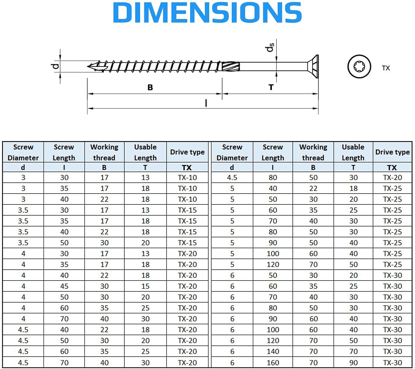 - EINFACHE INSTALLATION - TORX-Holzschrauben, einfache und schnelle Installation. Erfordert kein Vorbohren und verhindert das Spalten von Holz.