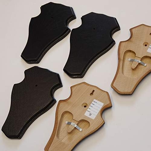 - 5 Stück Trophäenschilder für Rehgeweihe aus massiven Eichenholz - in Eiche dunkel - die Rückseite: Doppel Kieferfach mit Halteklammer, Bohrung für Gehörnklammer, Aufhängevorrichtung und Daten Aufkleber (mit möglichen Angaben zu: Erlegungstag,