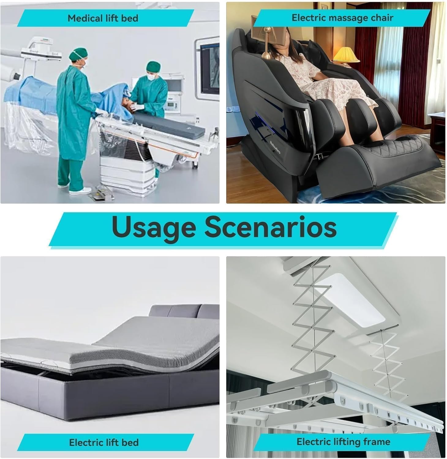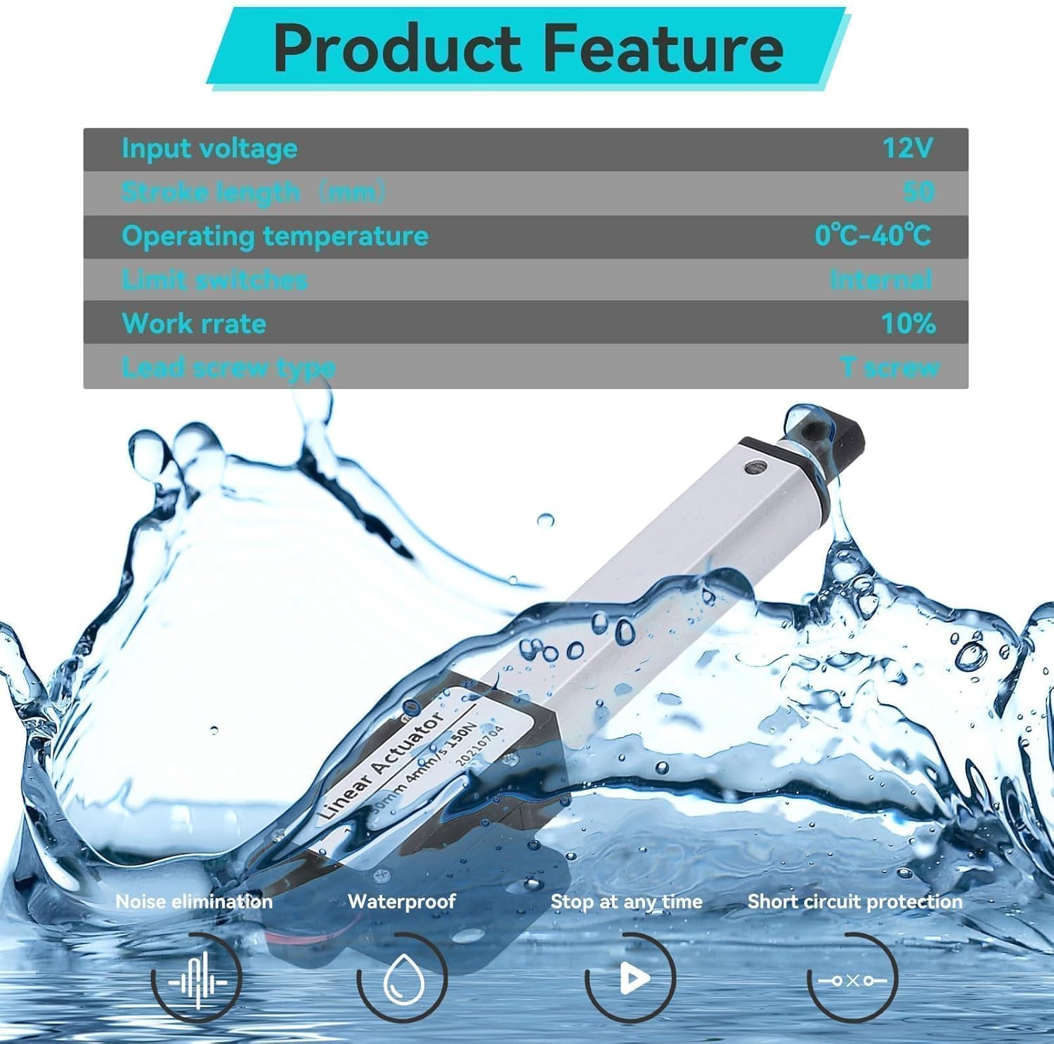 - Geräuscharm: Der elektrische Linearantrieb hat einen Hub von 50 mm, geringe Grösse, Geräuschunterdrückung und Kurzschlussschutz.