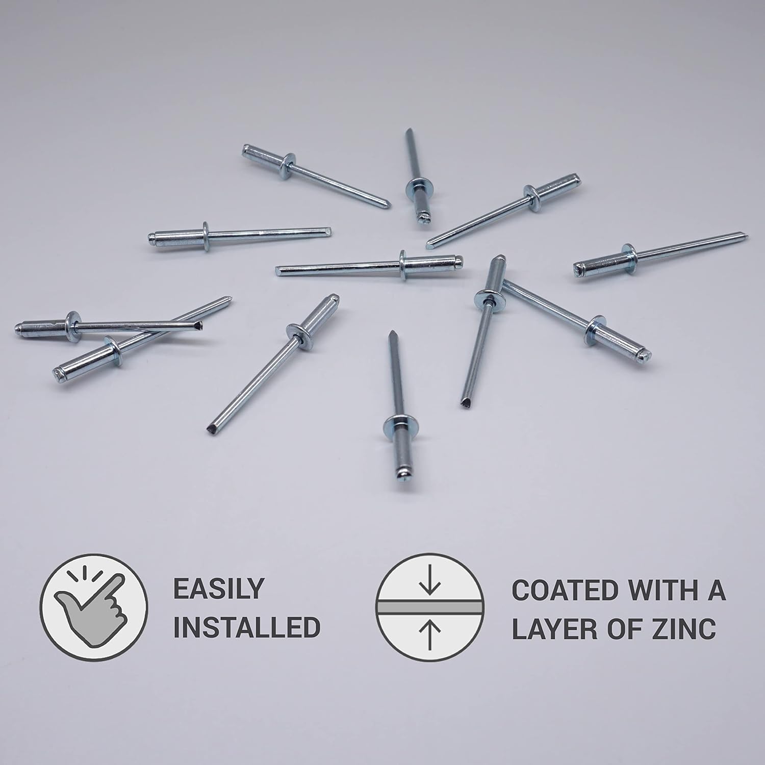 - ✔️ Die Nieten sind mit einer Schicht Zink beschichtet, die vor Korrosion schützt;