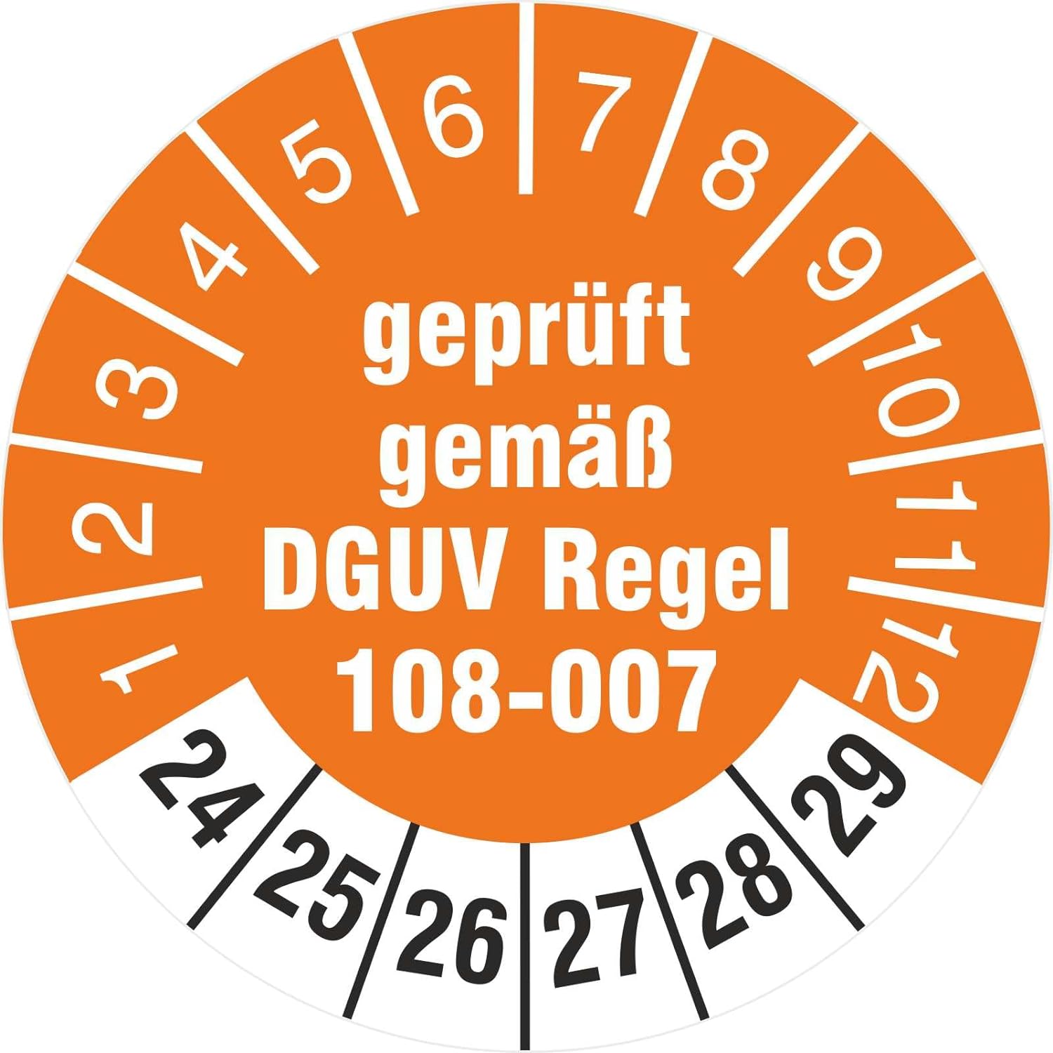 500 Prüfetiketten 18 mm Lagereinrichtungen geprüft DGUV Regel 108-007 2024-2029 Prüfaufkleber Prüfpl