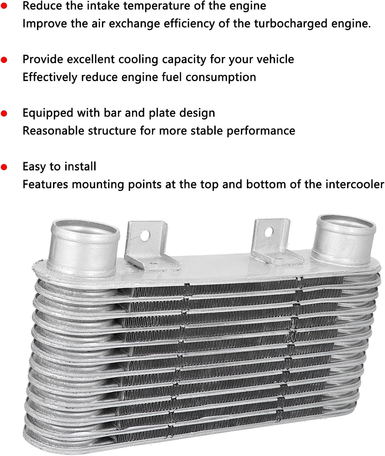 - Hervorragende Leistung: Ladeluftkühler für die Frontmontage Bietet eine hervorragende Kühlleistung für Ihr Fahrzeug und reduziert effektiv den Kraftstoffverbrauch des Motors. Entspricht strengen Qualitätskontrollstandards, zuverlässig im Gebrauch.