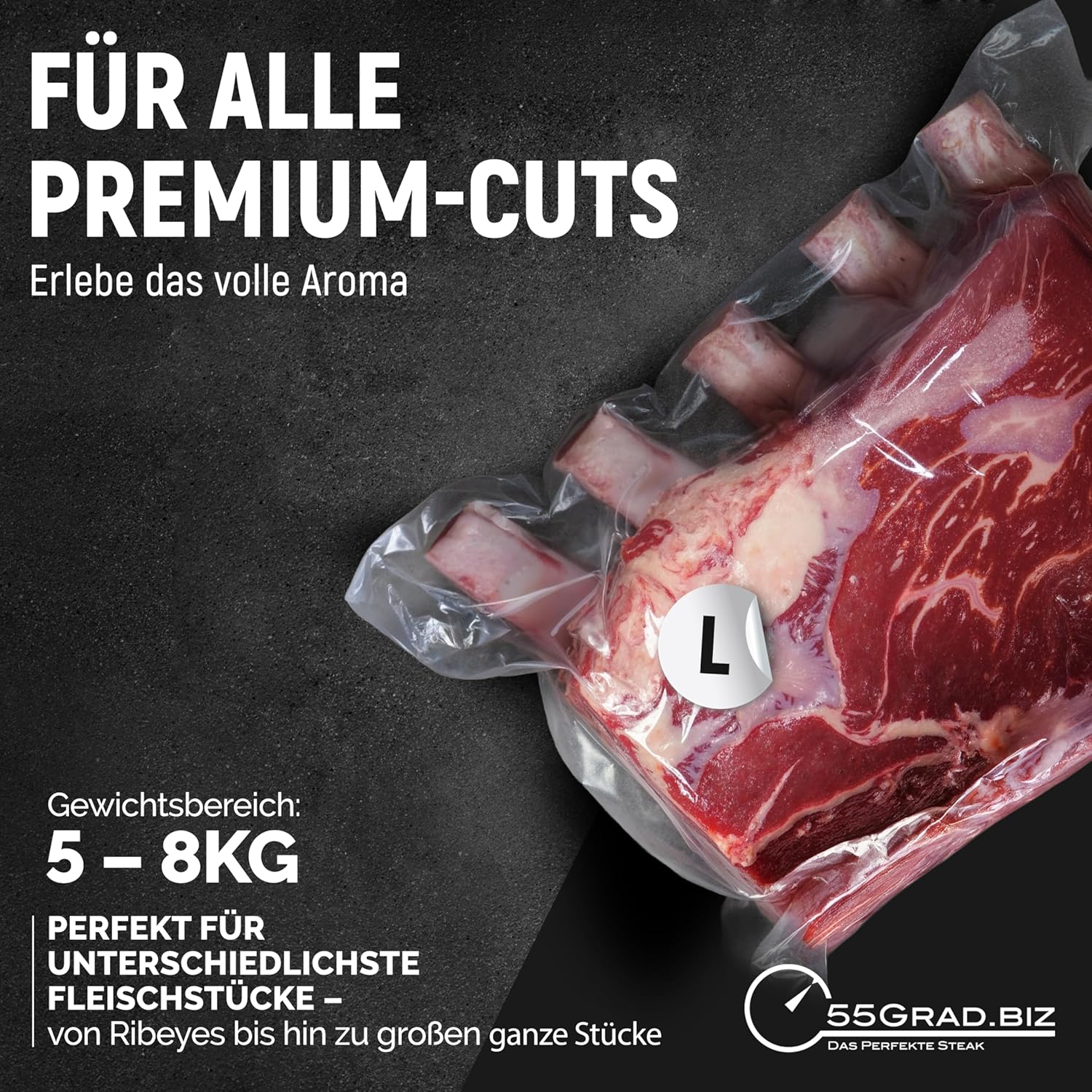 - Optimale Grösse: Ideal für Fleischstücke wie Ribeyes mit einem Gewicht von 5-8 kg, perfekt für grosse Stücke
