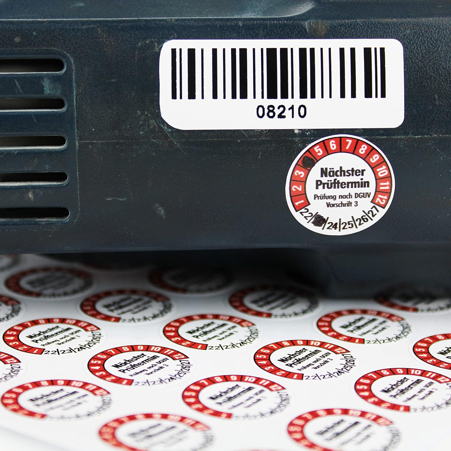 • Geprüft nach DGUV Vorschrift 3 Prüfplaketten sind für Aussen- und Inneneinsätze geeignet.