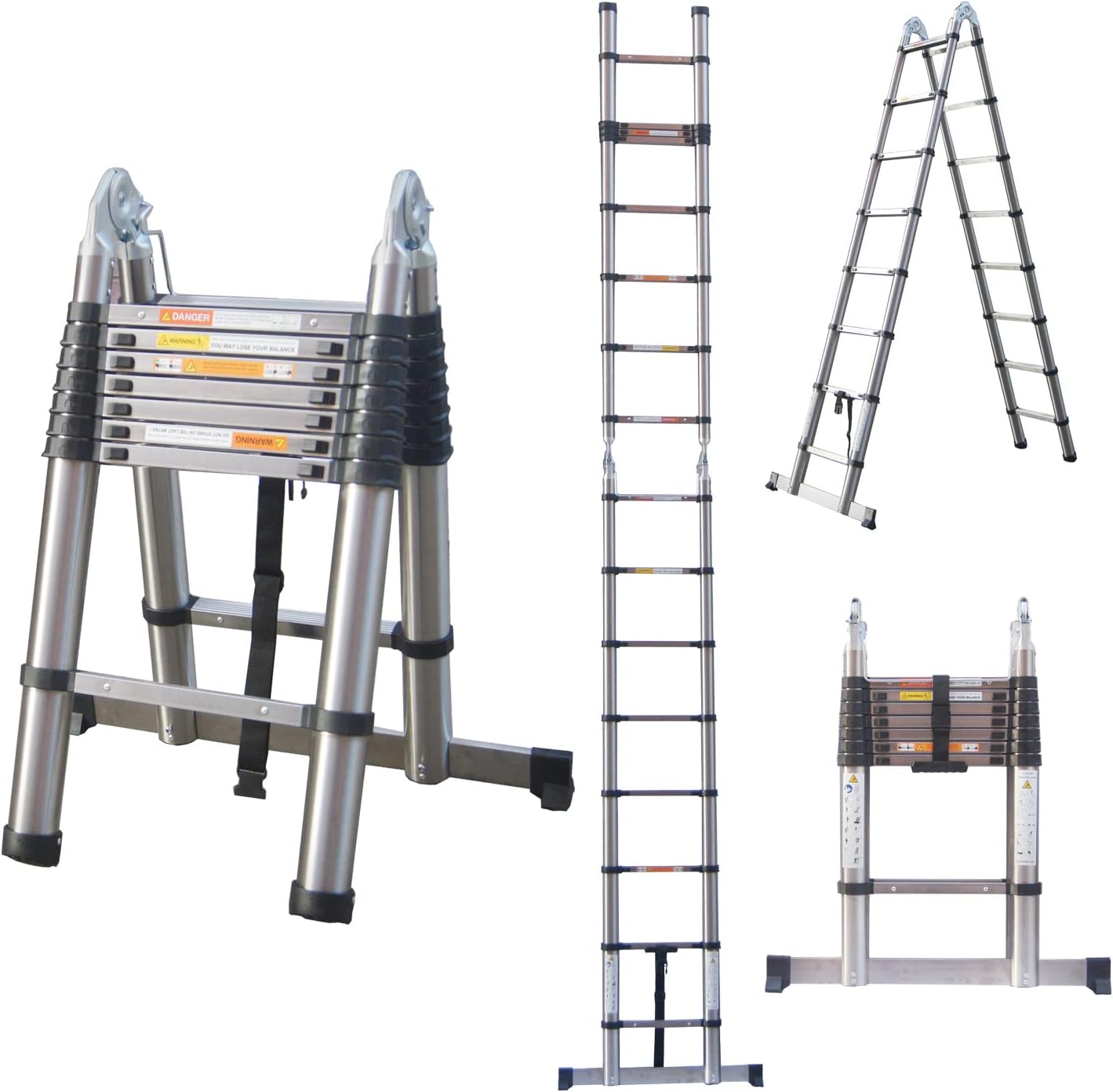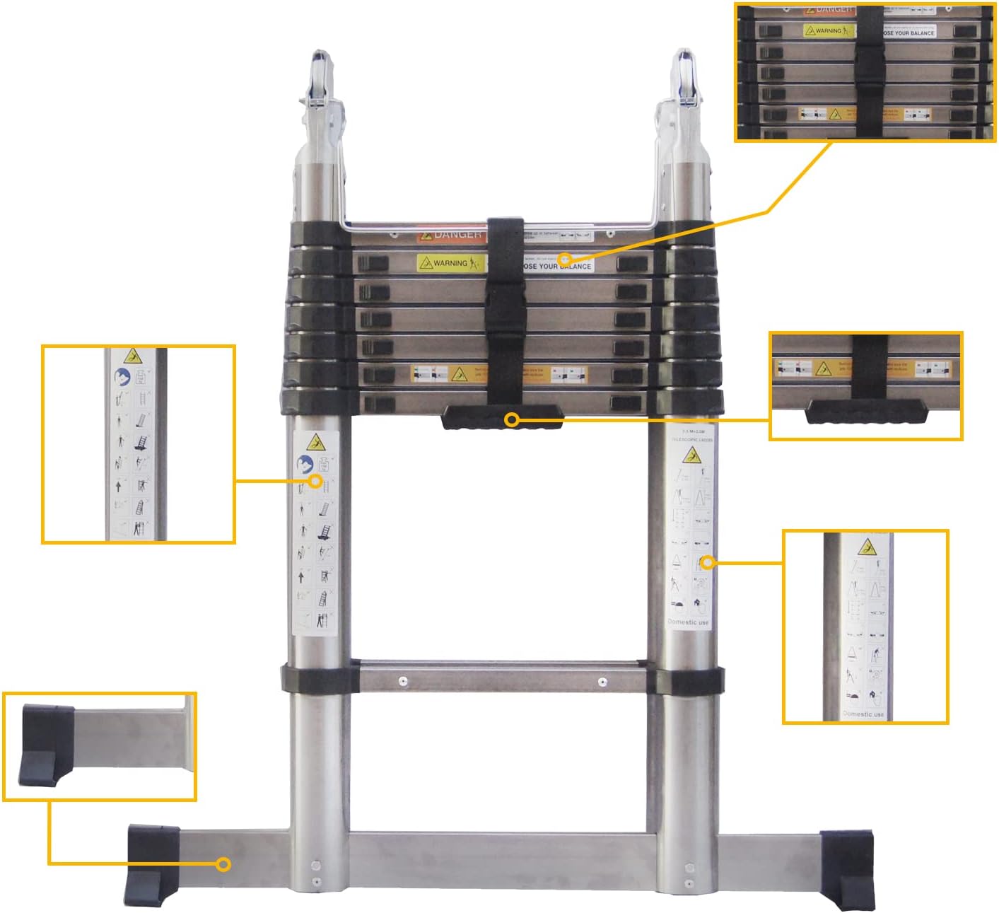 - Tragbar und praktisch: Kompakte und erweiterbare Grösse, einfach zu transportieren und zu lagern; Ein strapazierfähiger Verschlussgurt sichert die Leiter fest und ist leicht zu tragen.