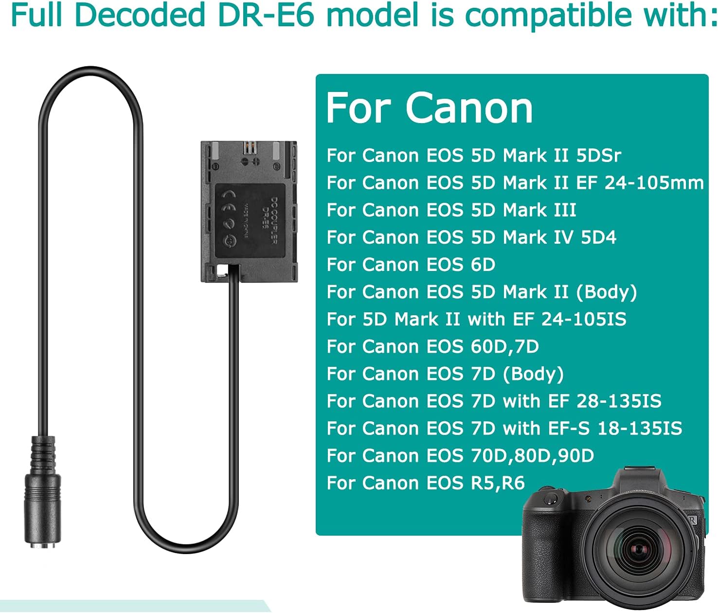 - ★DR-E6 LP-E6 LP E6 Völlig Decodierte Dummy Batterie für Canon EOS 5D Mark II III 5D2 5D3 60D 70D 80D 6D Mark II