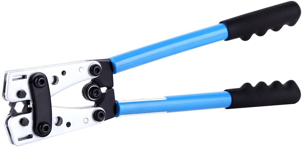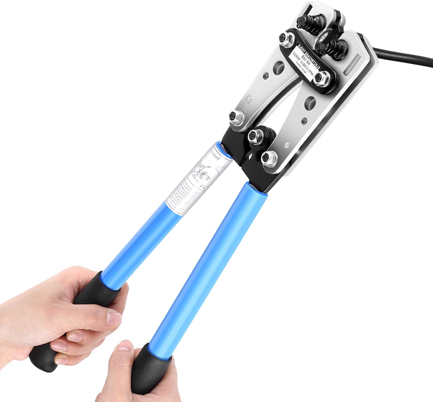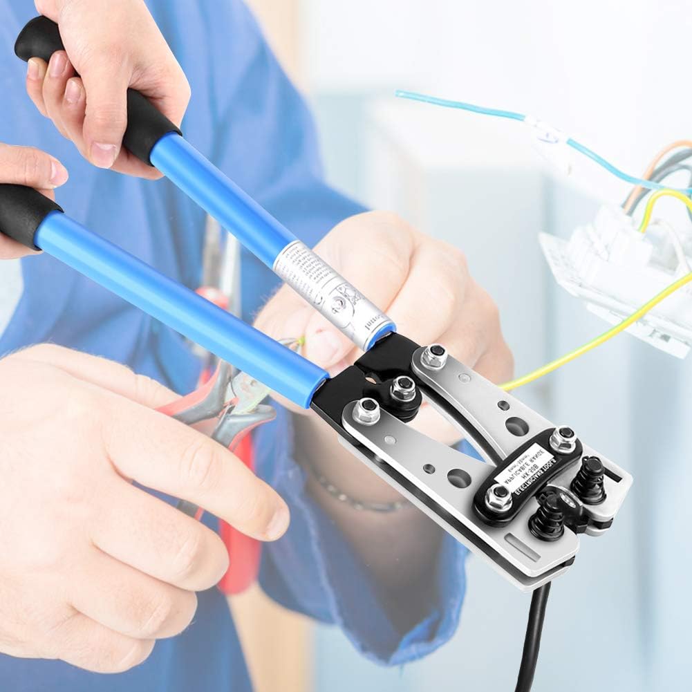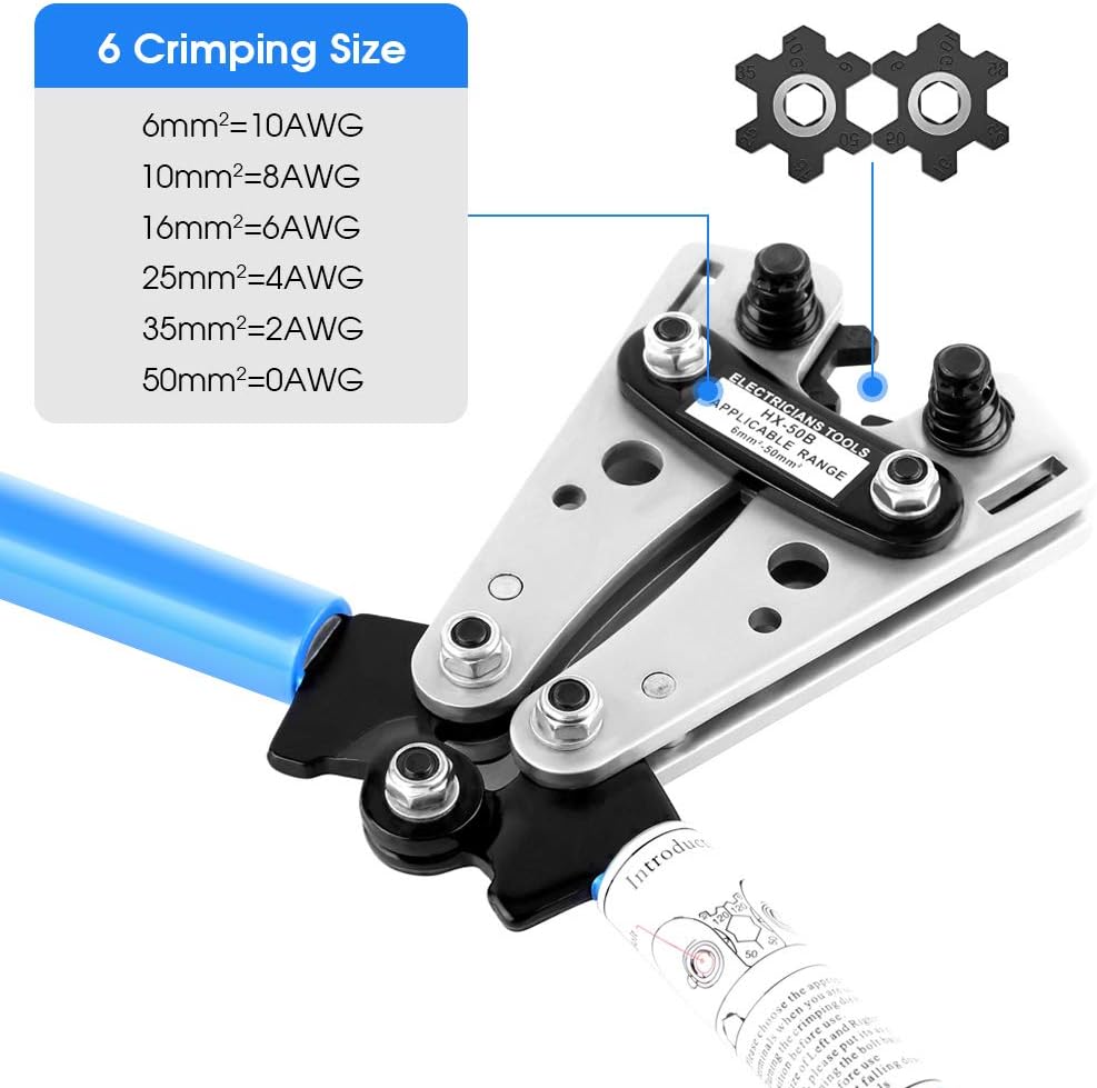 - 【Crimpwerkzeuge aus Kohlenstoffstahl + Gummigriffgehäuse】 Hergestellt aus gehärtetem Kohlenstoffstahl mit sechseckigem Typ, funktioniert es für blanke Kabel mit einer Kapazität von 6-50 mm², ist fest und langlebig und kann einen guten