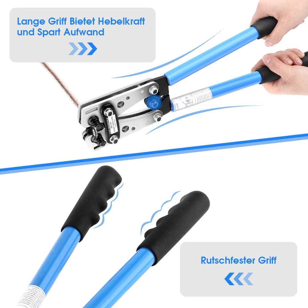 - 【Leicht und bequem】 Kompakt, leicht, einfach zu bedienen und zu tragen, ein professionelles und praktisches Crimpwerkzeug, Ergonomisch geformte lange Griffe mit Ärmeln für rutschfeste, sichere und komfortable Bedienung, Es zeichnet sich durch eine