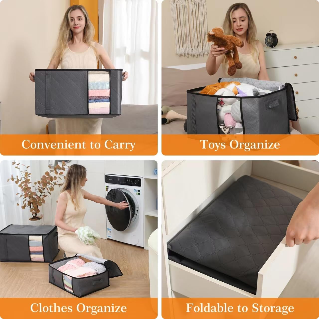 - Grosse Fassungsvermögen: Jede Aufbewahrungstasche misst 48 cm x 36 cm x 20 cm und fasst 35 Liter. Sie ist geräumig für Bettdecken, Bettwäsche, Kissen, Plüschtiere, Jacken oder andere Kleidung.