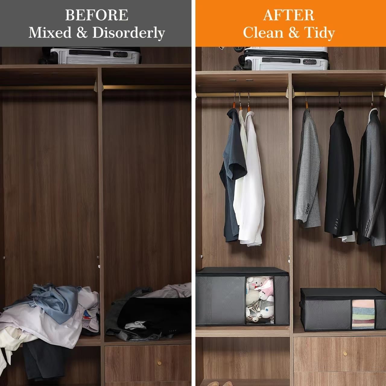 - Vielseitigkeit: Das Aufbewahrungsbox mit Deckel kann für Kleiderschrank oder Garderobe verwendet werden, ist auch eine gute Wahl für Studentenwohnheim, Dachboden oder Schlafzimmer. Die Taschen sind nur aus Stoff und haben keine Metallstützen im