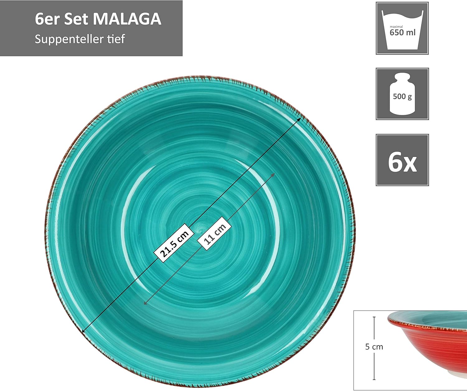 - Suppentellerset Malaga für 6 Personen: 6 tiefe Essteller, Servier-Schale rund, Salat-Teller