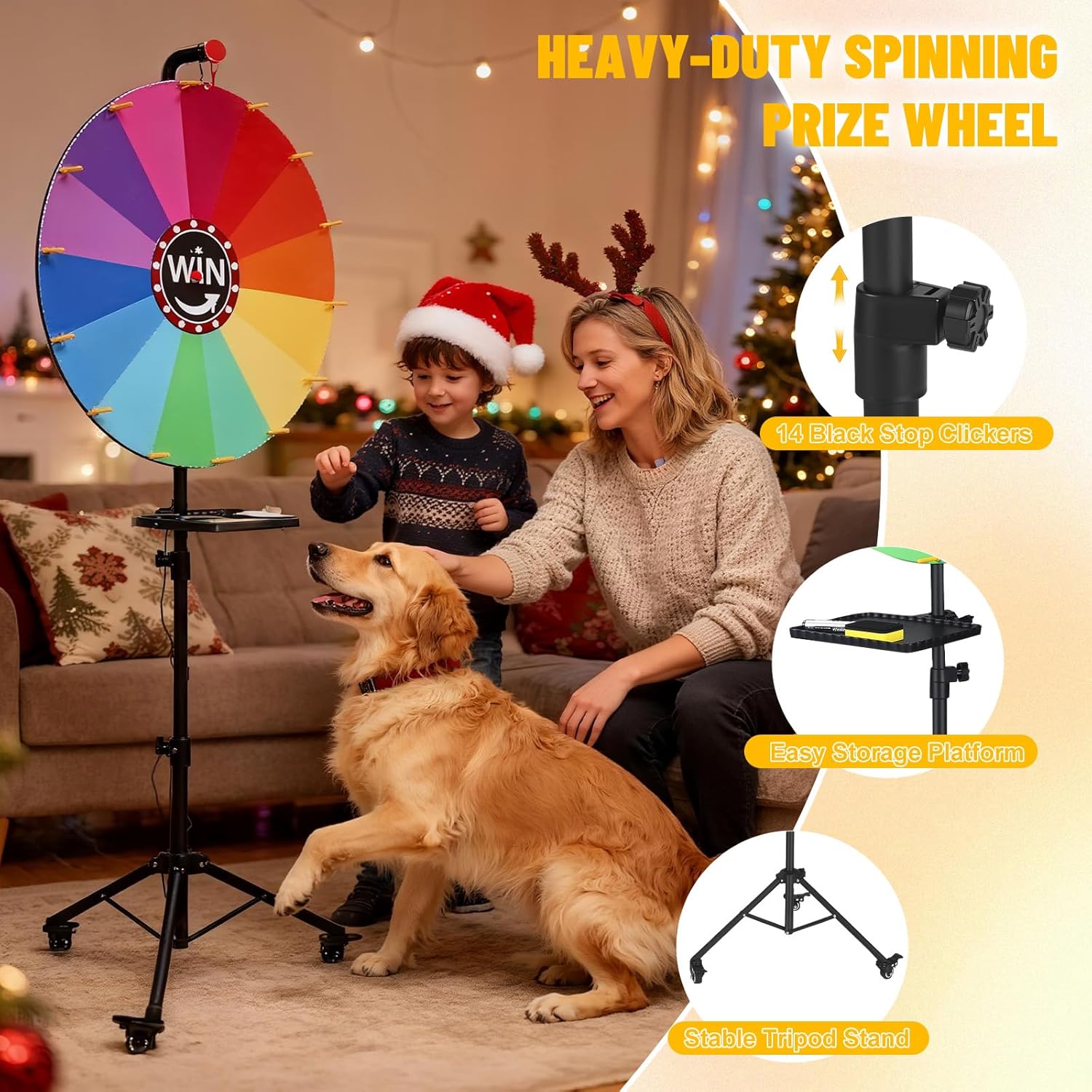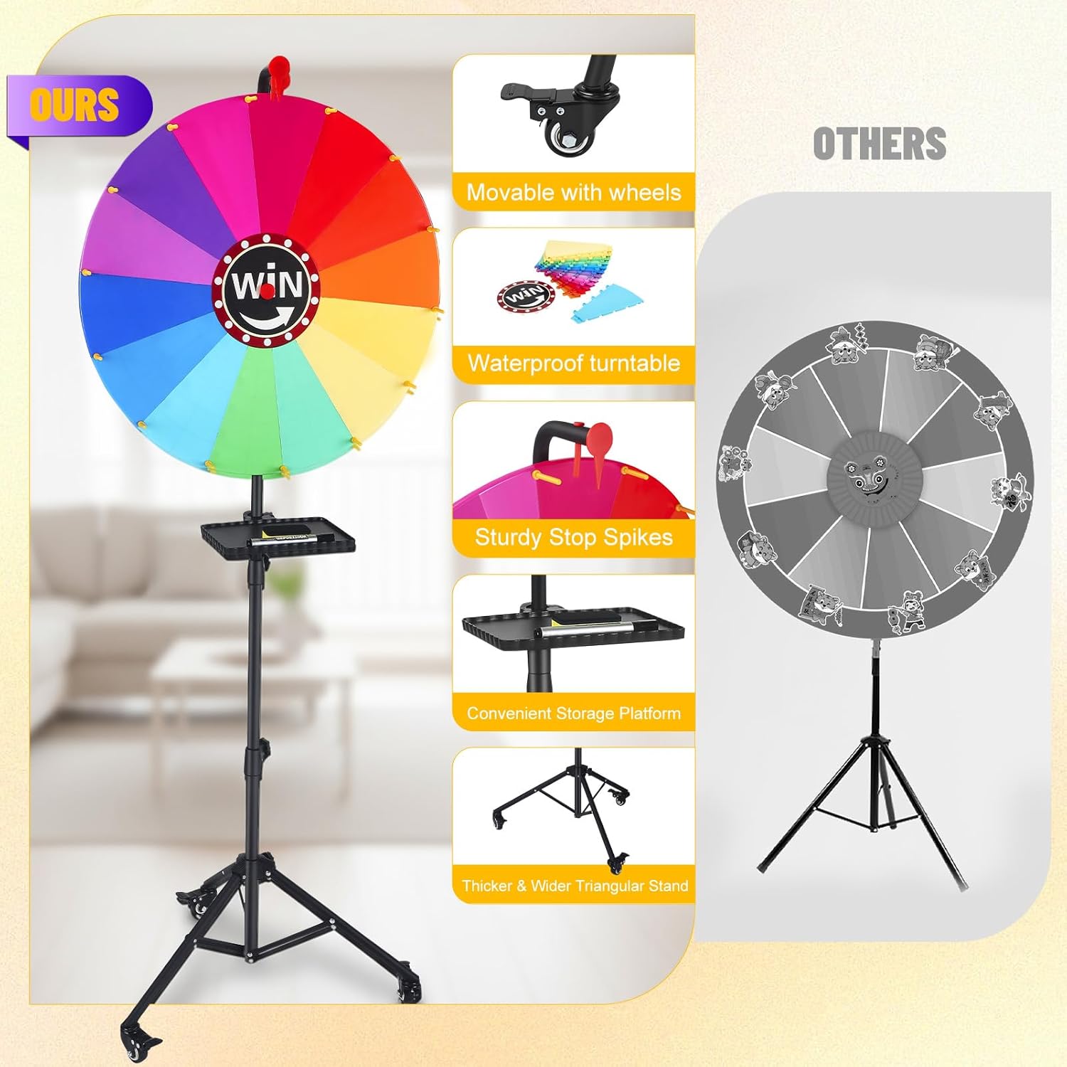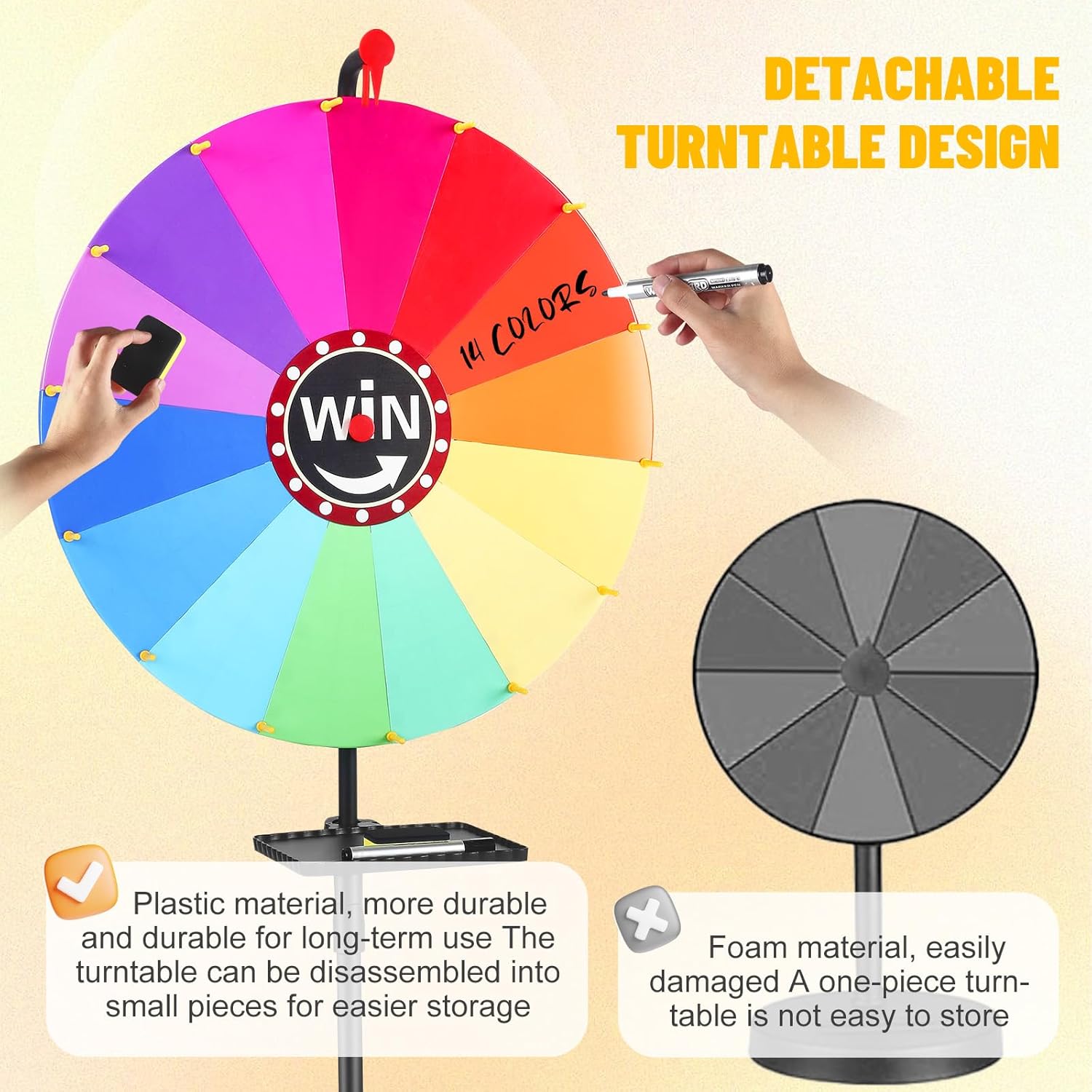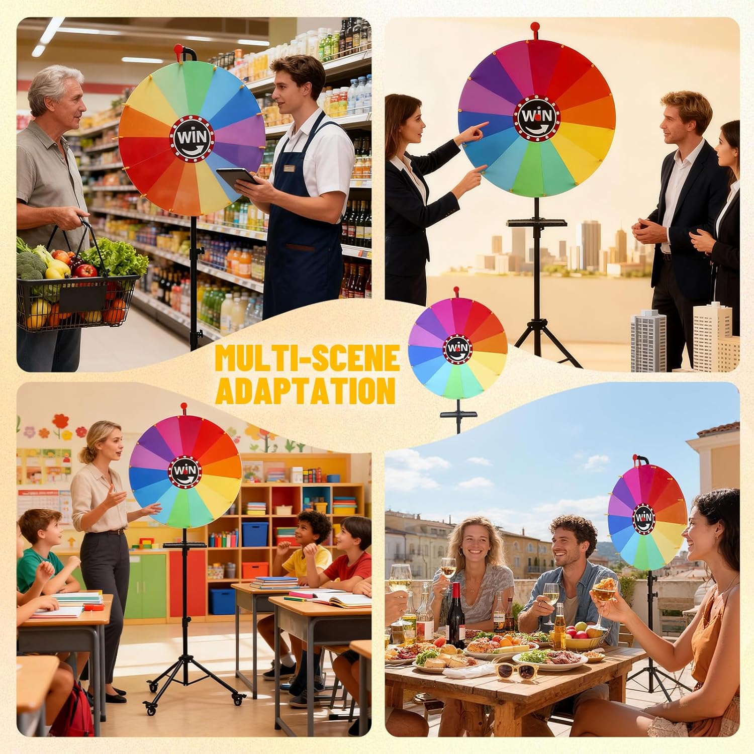 - 【🎡 Grosses 60cm Glücksrad für Veranstaltungen】Unser auffälliges Glücksrad (Durchmesser 60 cm) ist der Hingucker auf jeder Party! Der stabile Drehmechanismus sorgt für spannende Spiele – ideal für Gewinnspiele, Messen oder Schulfeste!