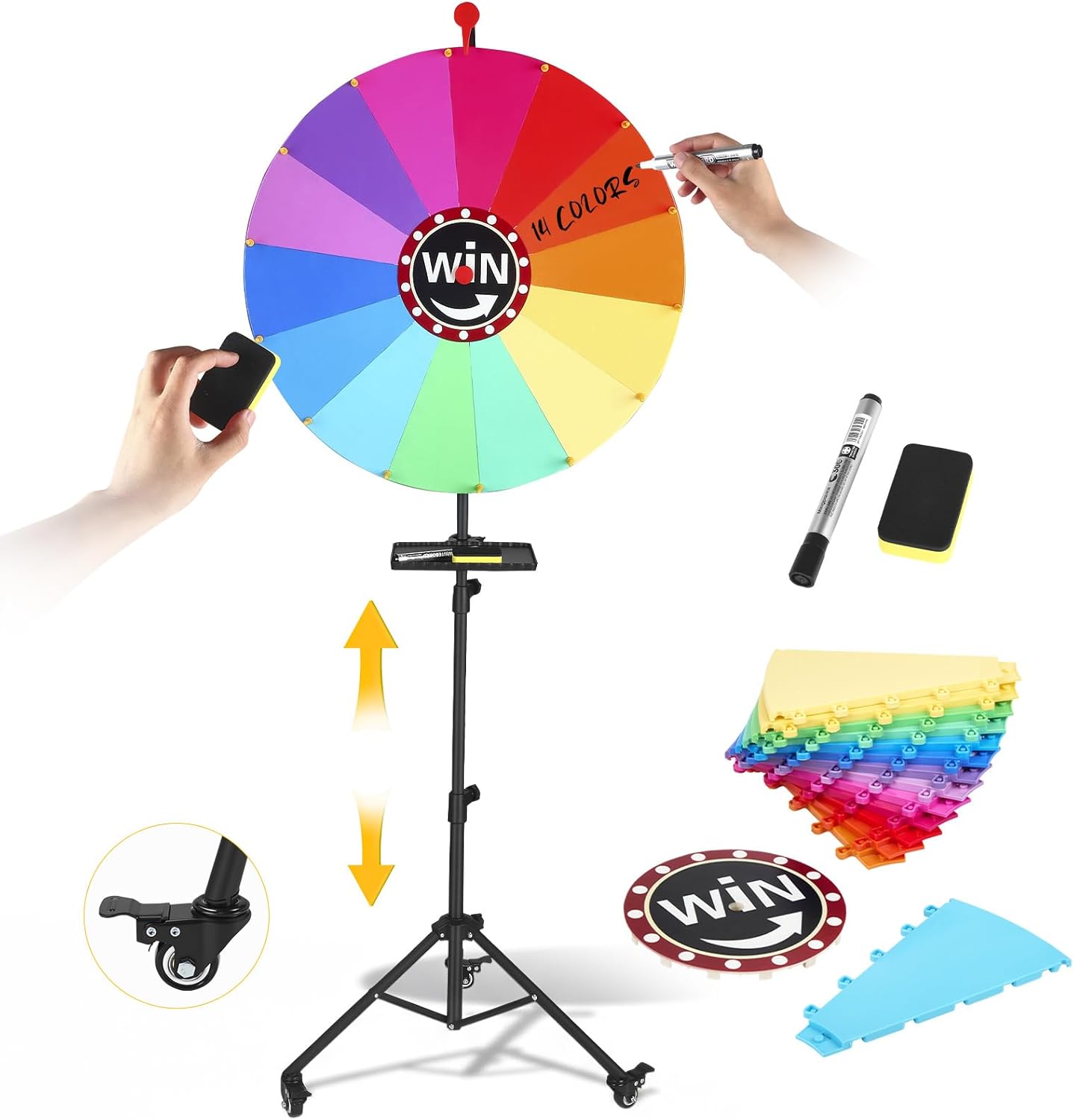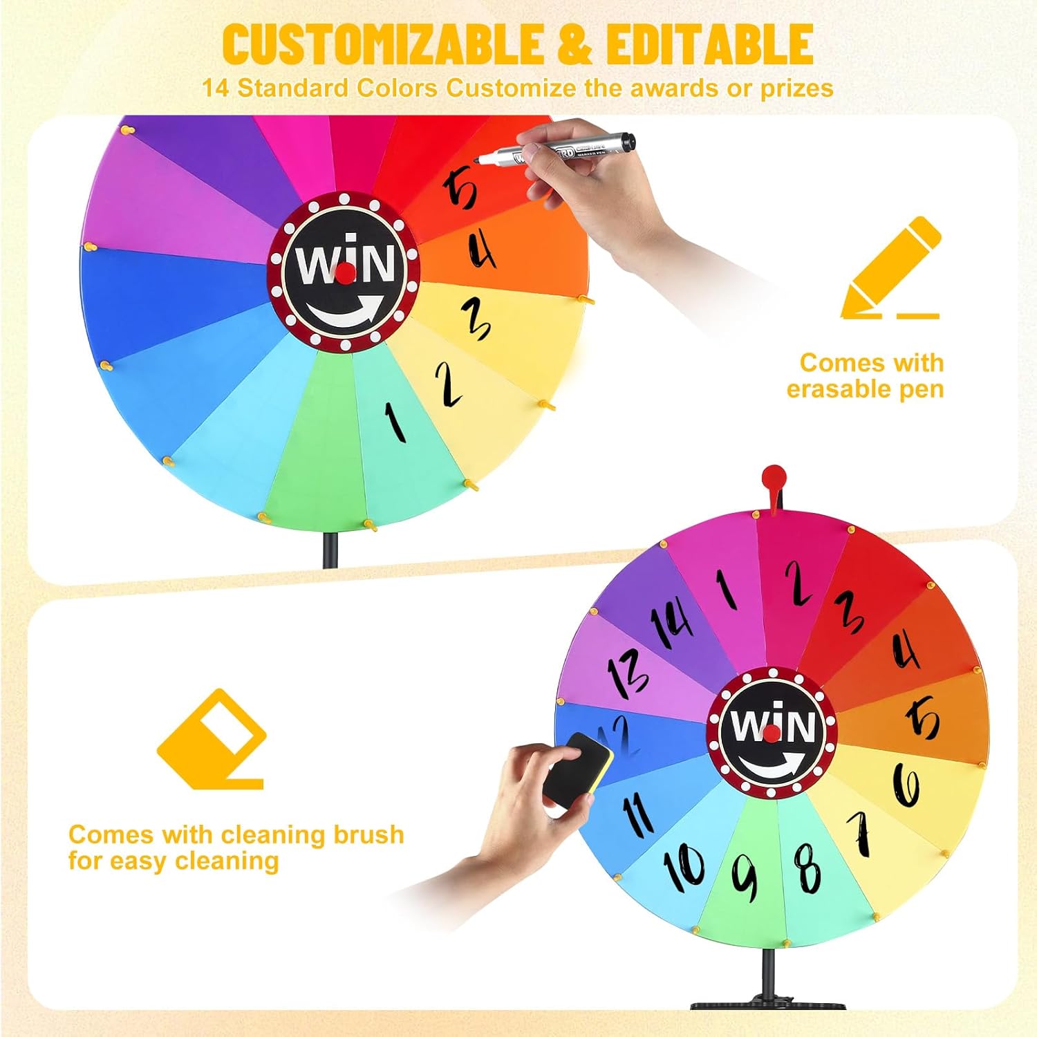 - 【🎨 14 individuell anpassbare Felder】Das Glücksrad bietet 14 bunte Segmente zum Beschriften. Inklusive Whiteboard-Marker und Schwamm – einfach Preise eintragen und losdrehen!