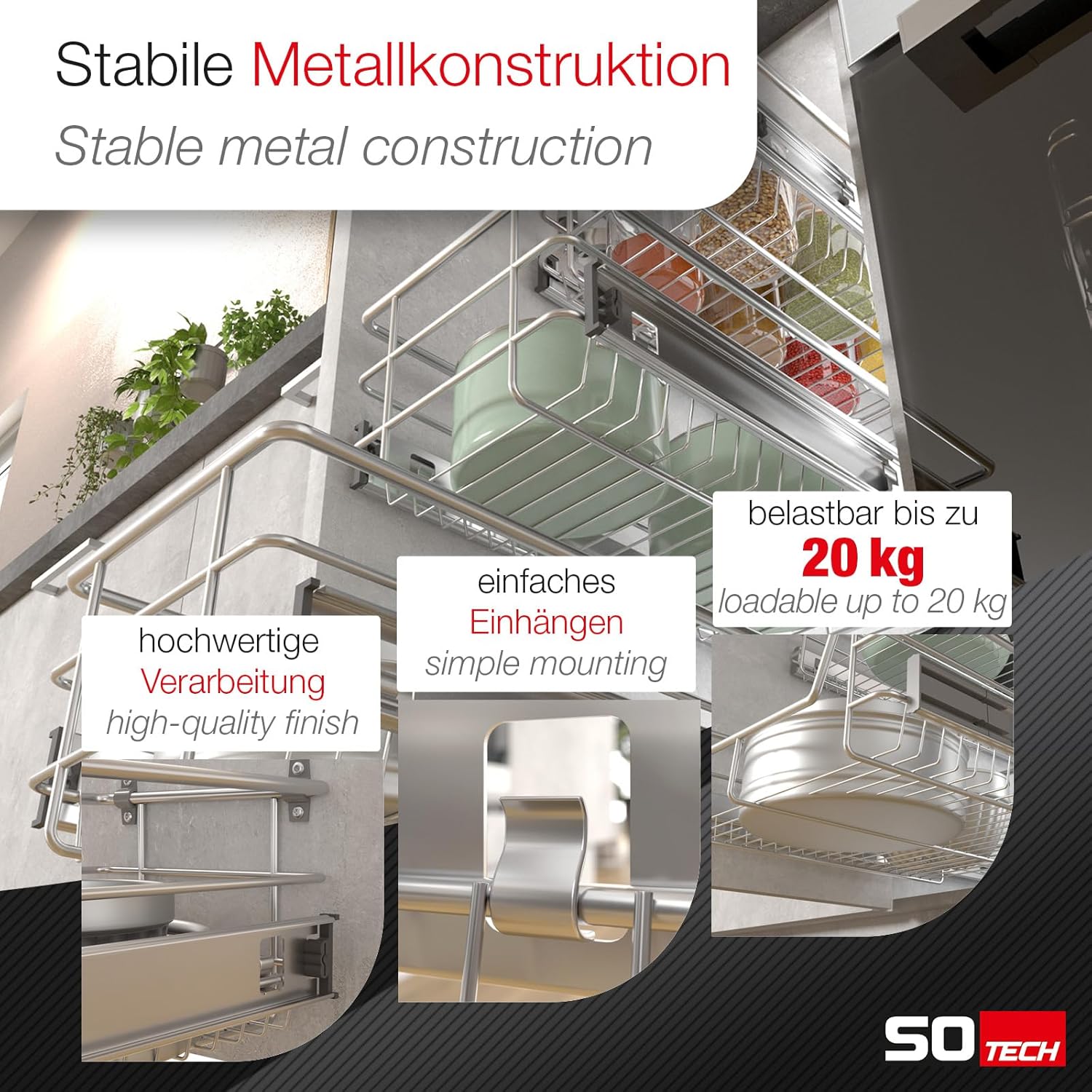 - erleichtert das Befüllen und Entnehmen von Kochgeschirr in Einbauschränken / für jede Küche geeignet