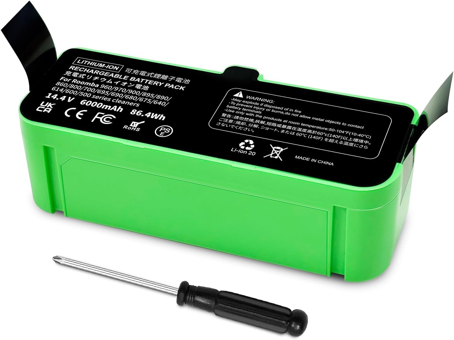 - 【Specifications】Batterietyp: Li-Ion. Spannung:14.4V. Kapazität: 6000mAh.Zykluszeiten: ≥1000 Zyklen.Hochkapazitätsakku für iRobot Roomba 500 600 700 800 900 R3 Serie.