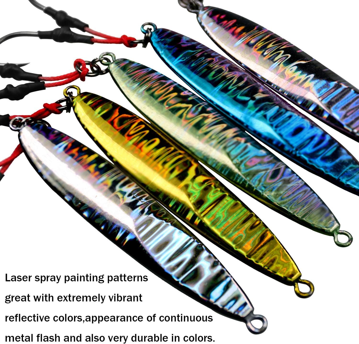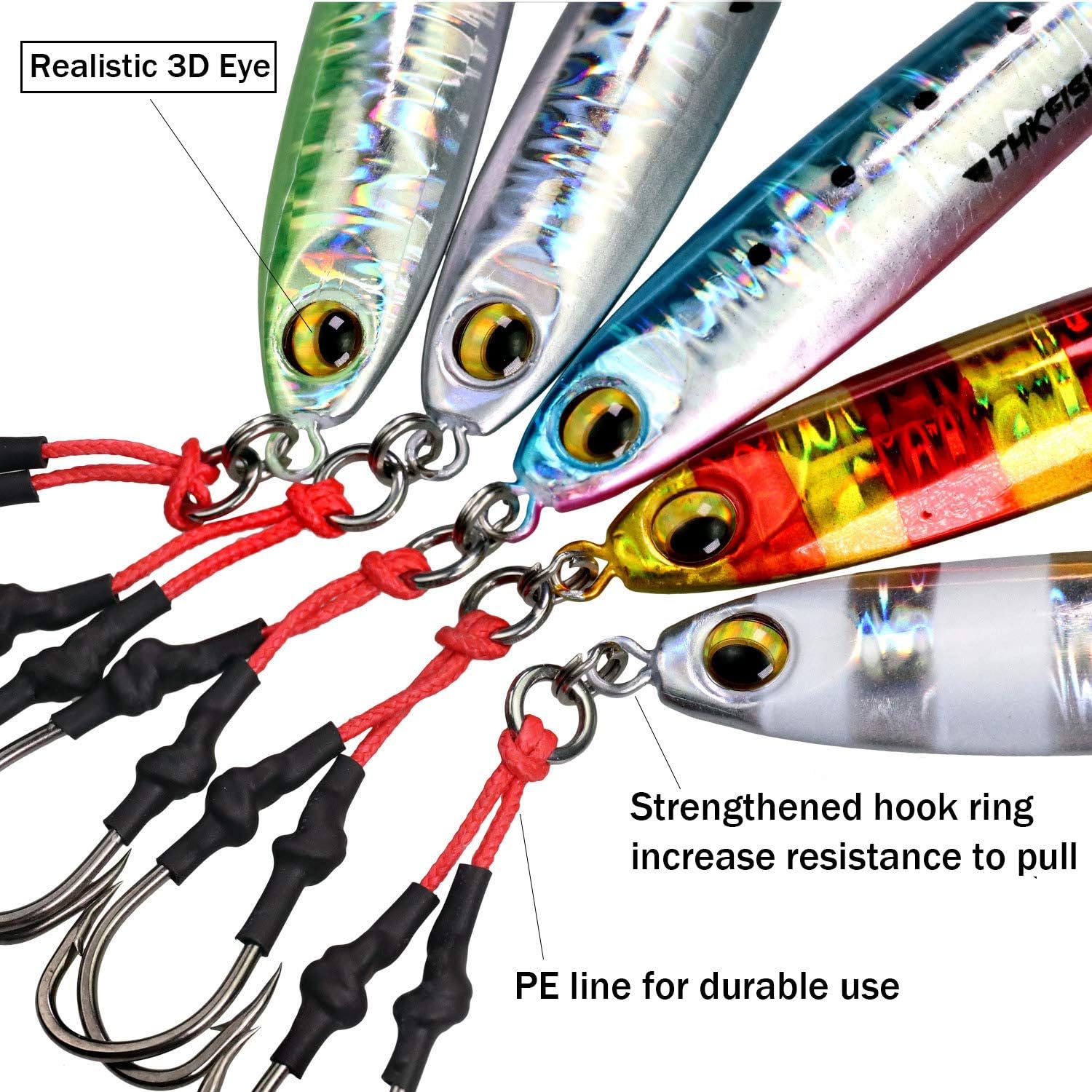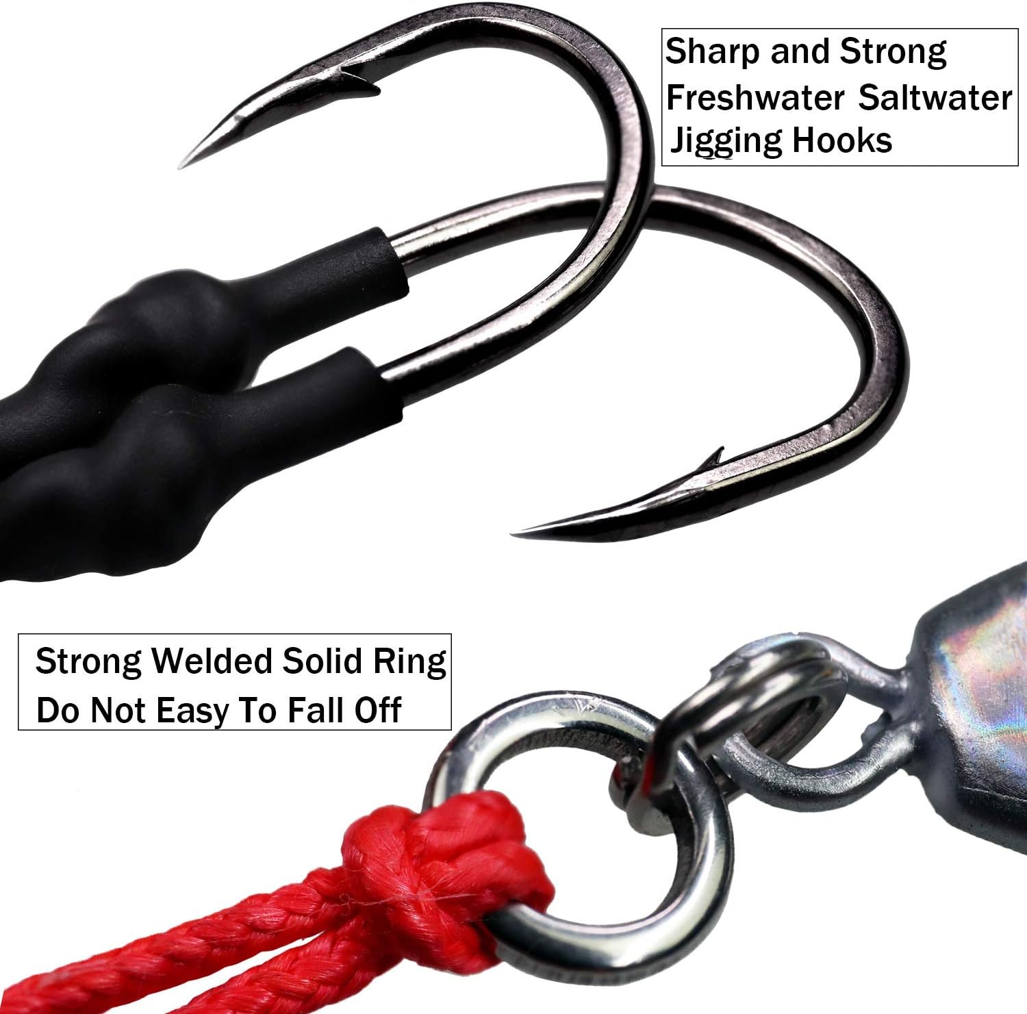 - 4. Perfekte Komponenten: Ultra-realistische 3D-Augen sind attraktiver. Verstärkter Hakenring erhöht die Zugfestigkeit, PE-Leitung für dauerhaften Gebrauch, stark geschweisster Vollring macht es nicht leicht, herunterzufallen. Der Jiggingköder der