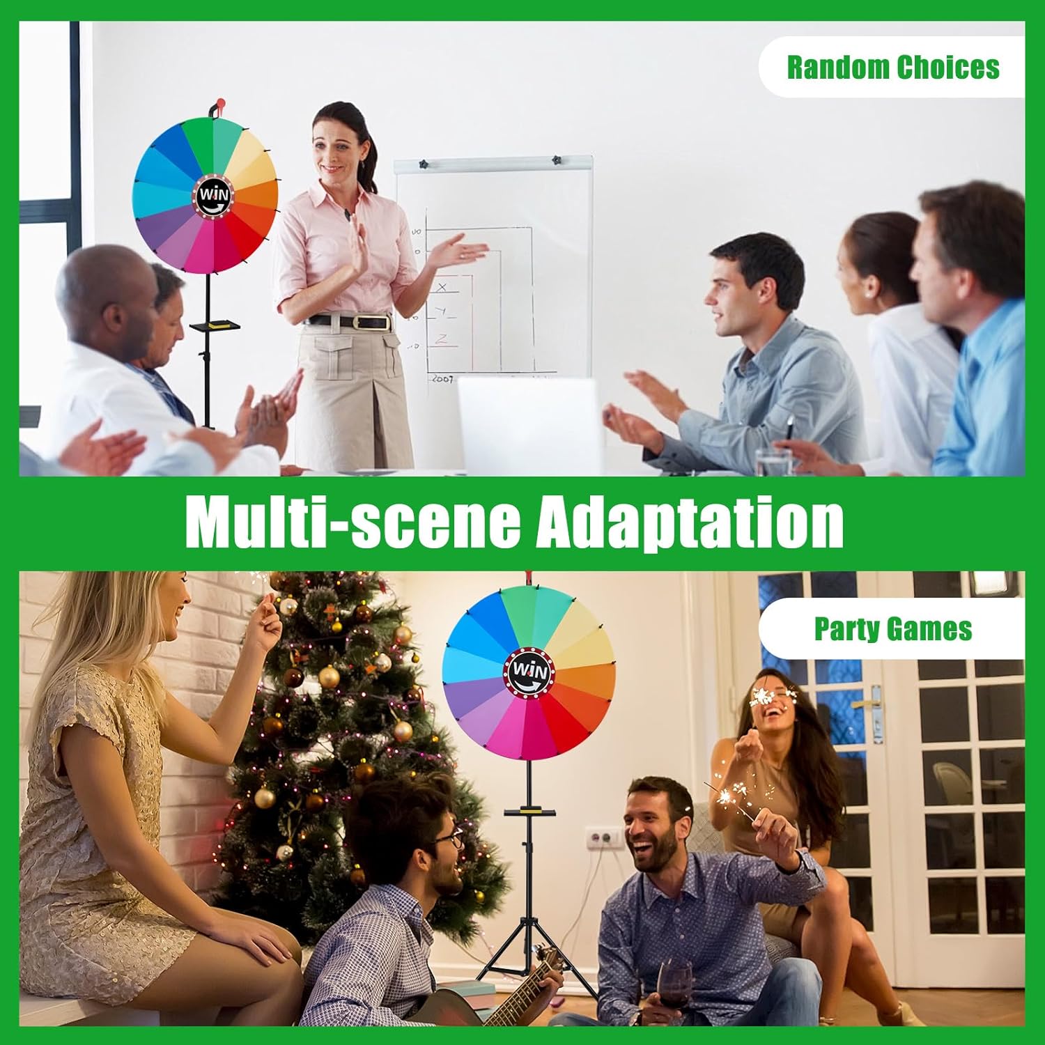 - 【Vielseitiges Event-Tool】 Unser Glücksrad eignet sich für Messen, Werbeaktionen, Karneval, Feiertagsveranstaltungen, Partyspiele und vieles mehr. Sein ansprechendes Design und die benutzerfreundliche Bedienung machen es zum Hit auf verschiedensten