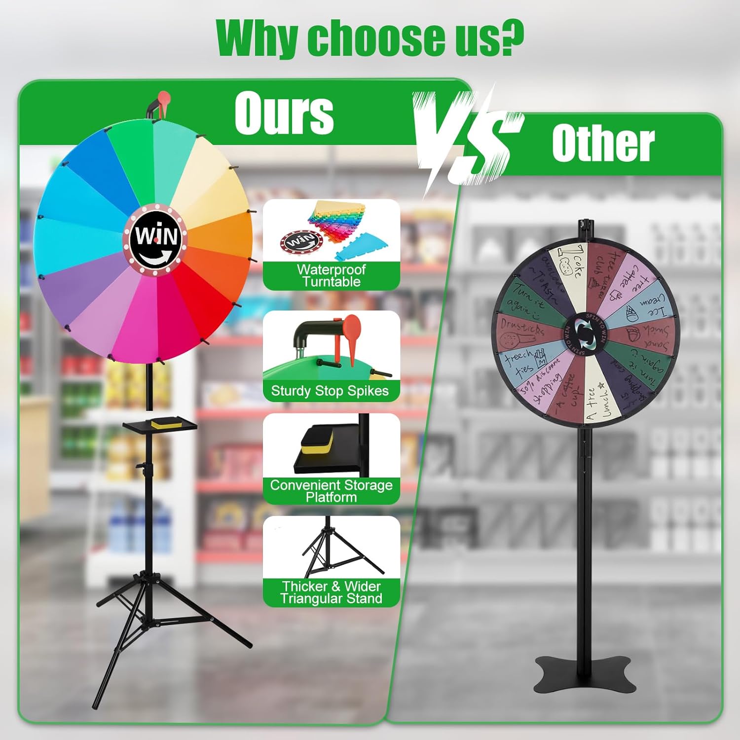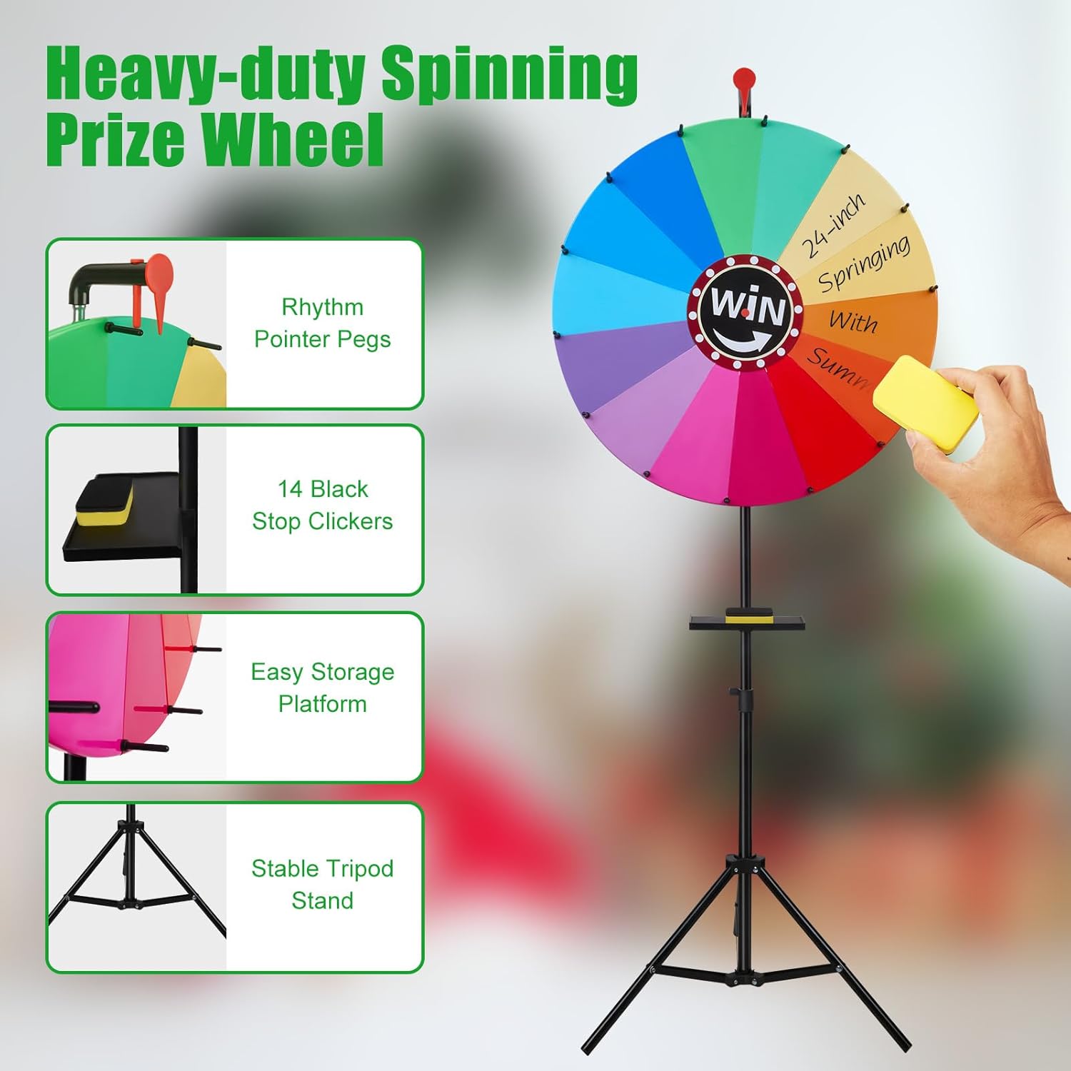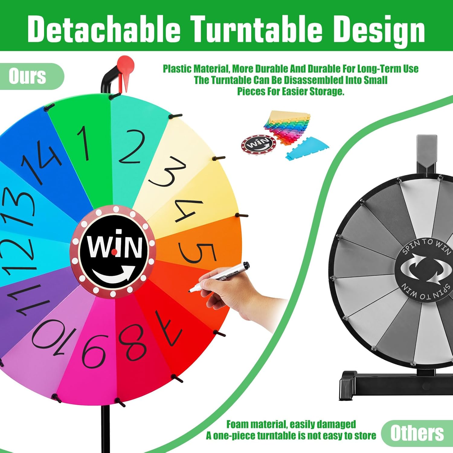 - 【Einfacher Auf- und Abbau】 Dank abnehmbarer Stangen und eines zusammenklappbaren Stativs lässt sich unser Glücksrad schnell auf- und abbauen. Die Komponenten können zudem platzsparend verstaut werden – ideal für Veranstaltungsplaner, die eine