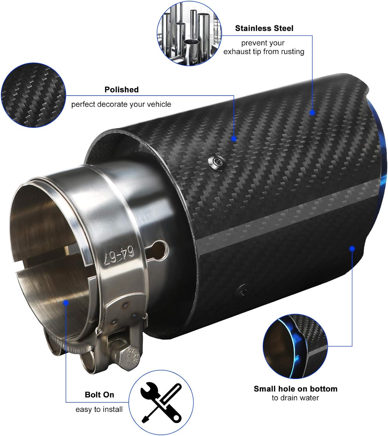- 【Der Einlassdurchmesser beträgt 63mm】 Nur für 63mm oder 62mm Autoendauspuffrohr geeignet, andere Grössen sind nicht geeignet, also bitte vor dem Kauf messen