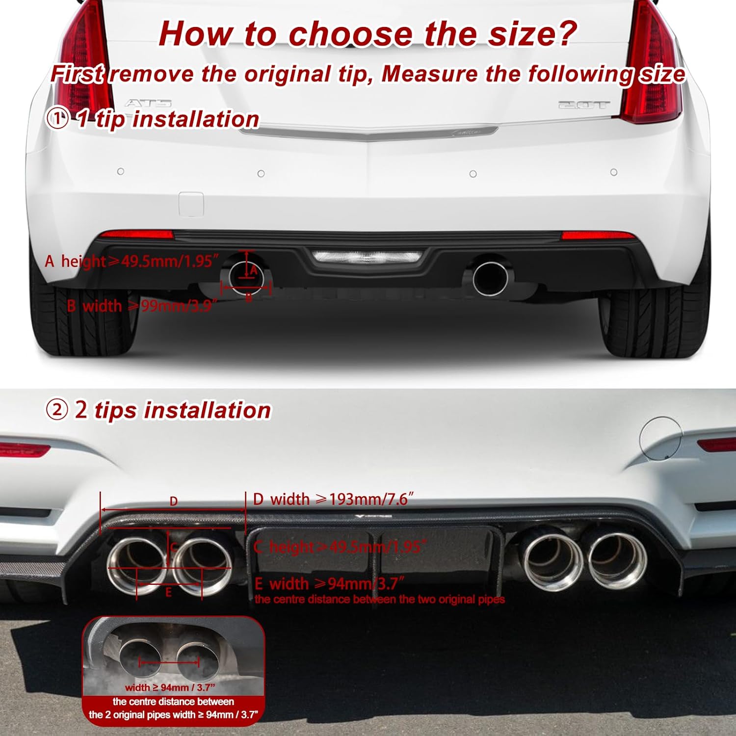 - 【Hochwertiger Stahl】 Design mit langlebiger SUS304-Edelstahl-Auspuffspitze. Schützen Sie Ihr Originalrohr vor Sonne und Regen. Vermeiden Sie Rostbildung und Verformung