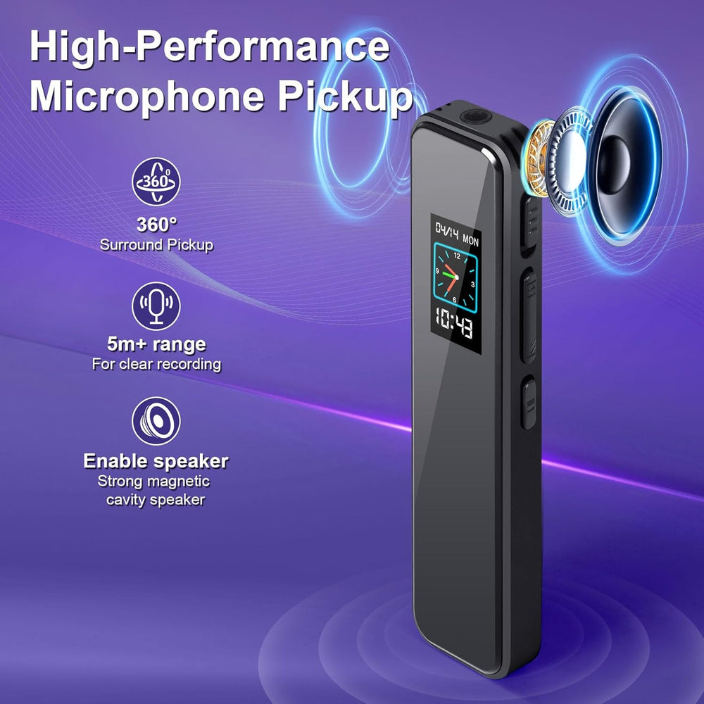 - 【Hochwertige Audioaufnahme in HIFI-Qualität】Geniessen Sie kristallklare Aufnahmen dank des professionellen Mikrofons mit Rauschunterdrückung. Das digitale Diktiergerät zeichnet sich durch exzellente Audioqualität aus, mit der Möglichkeit,