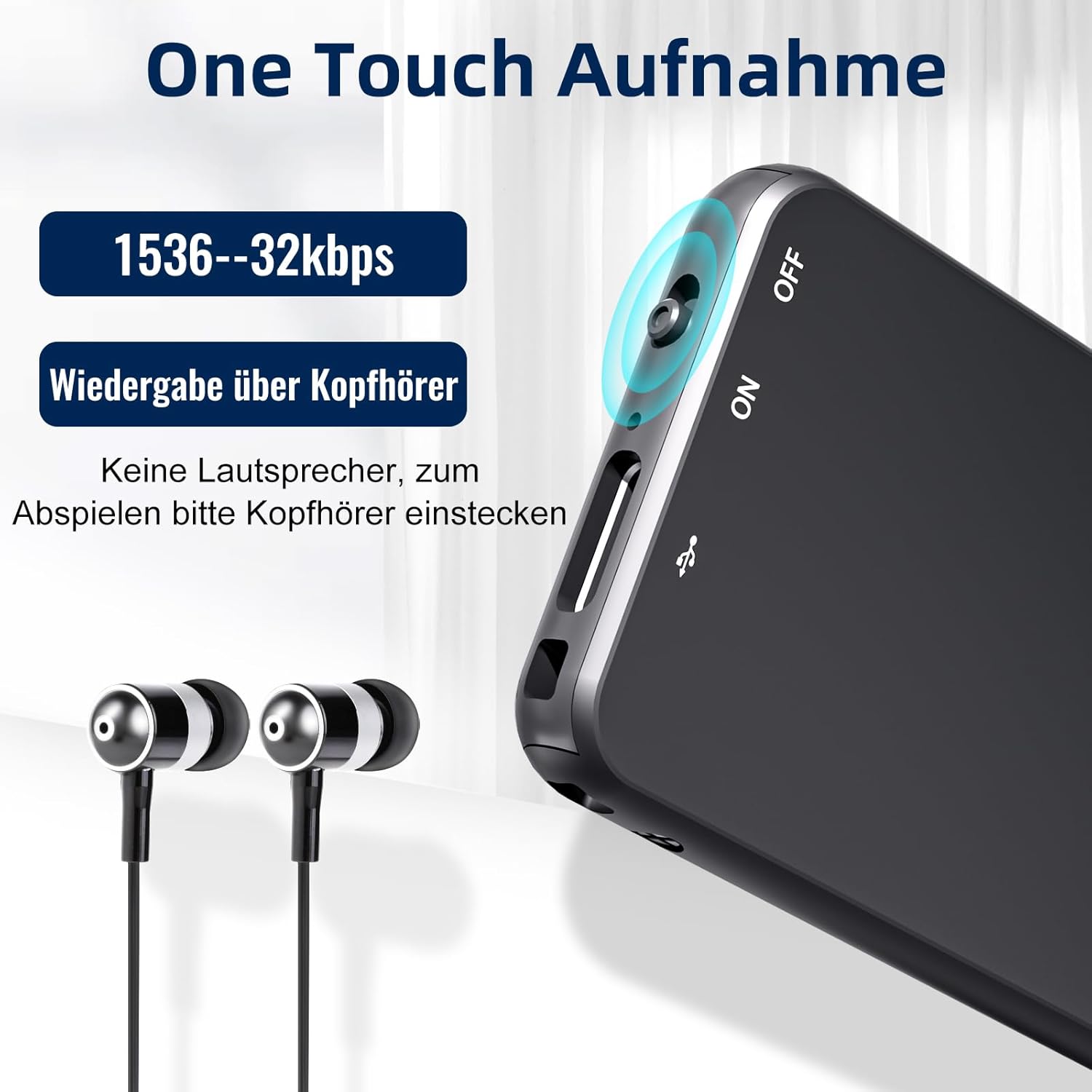 - 💗【Ein-Tasten-Aufnahme & Kopfhörer-Wiedergabe】Einfach den Voice Recorder auf ON/OFF schieben, um eine Aufnahme mit 1536-32 kbps zu starten/speichern. Keine Unterbrechungen durch Anrufe oder Nachrichten wie bei Telefon-Aufnahmen können Sie sich