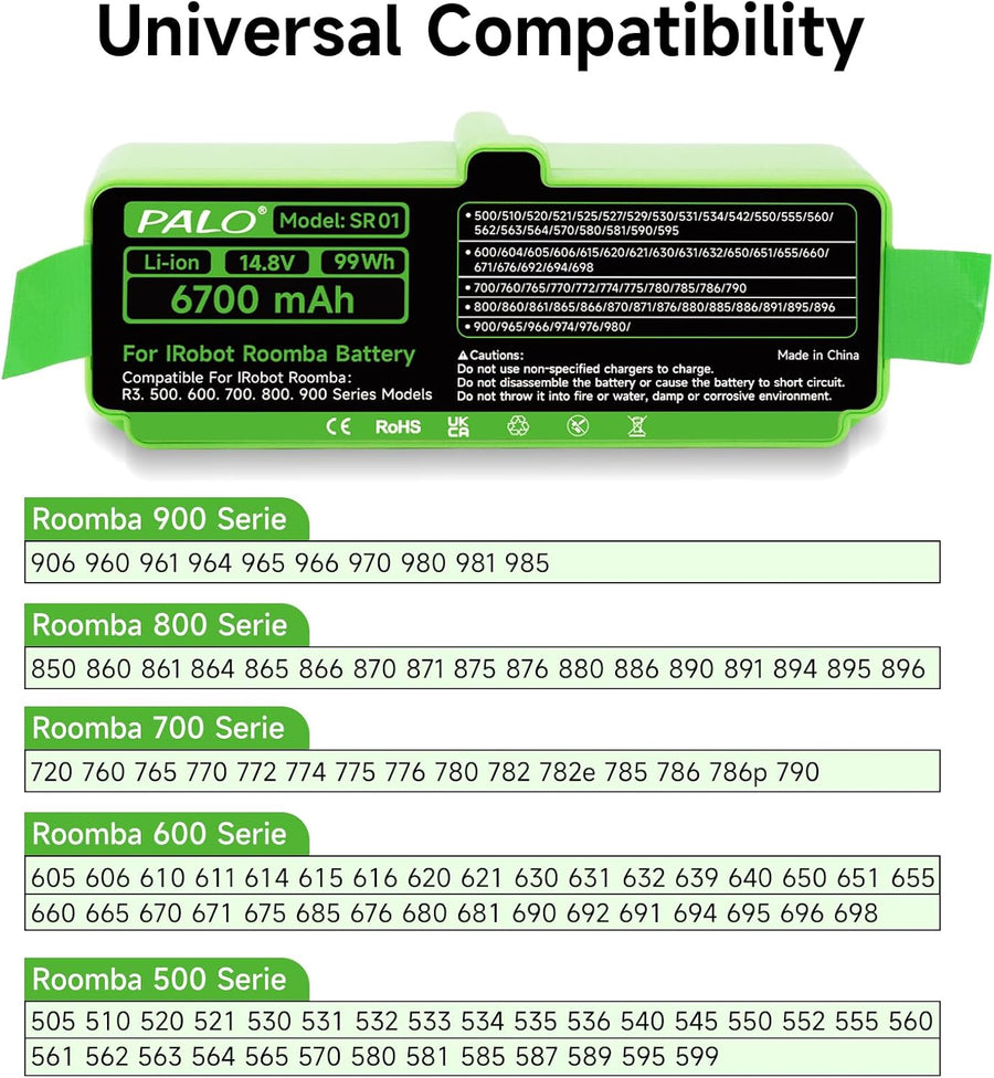 - 【Ersatzakku】Dieser mit Präzision gefertigte Lithium-Ionen-Akku liefert eine Spannung von 14,8 V und verfügt über eine beeindruckende Kapazität von 6700 mAh.
