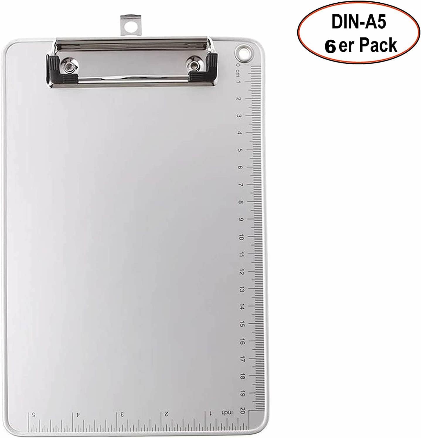 - [ 6er Set ] A5 Klemmbrett extra dick, mit Metal Klemme, extra robuste und stabile Metall Schreibplatte aus Aluminiumlegierung. Ideal als Schreibunterlage für Büro, Lehrer, Studenten, Praxis, Krankenhäuser, Gastronomie, Industrie, Transport