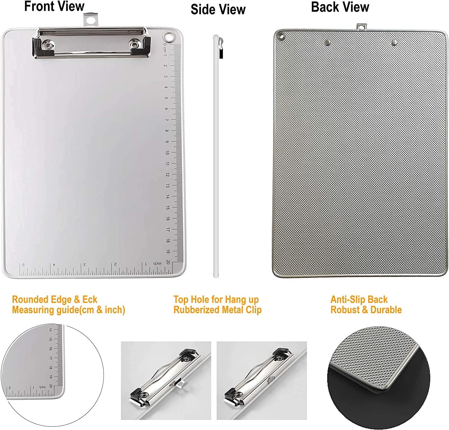 - Praktisches Design : mit der Aufhängeose (Loch) können Sie das Klemmbrett an der Wand verstauen um Platz zu sparen. Praktische Integriete Zentimeter und Zoll Skalen. Keine scharfen Kanten durch abgerundete Ecken und Kanten. Sicheres Handling garantiert