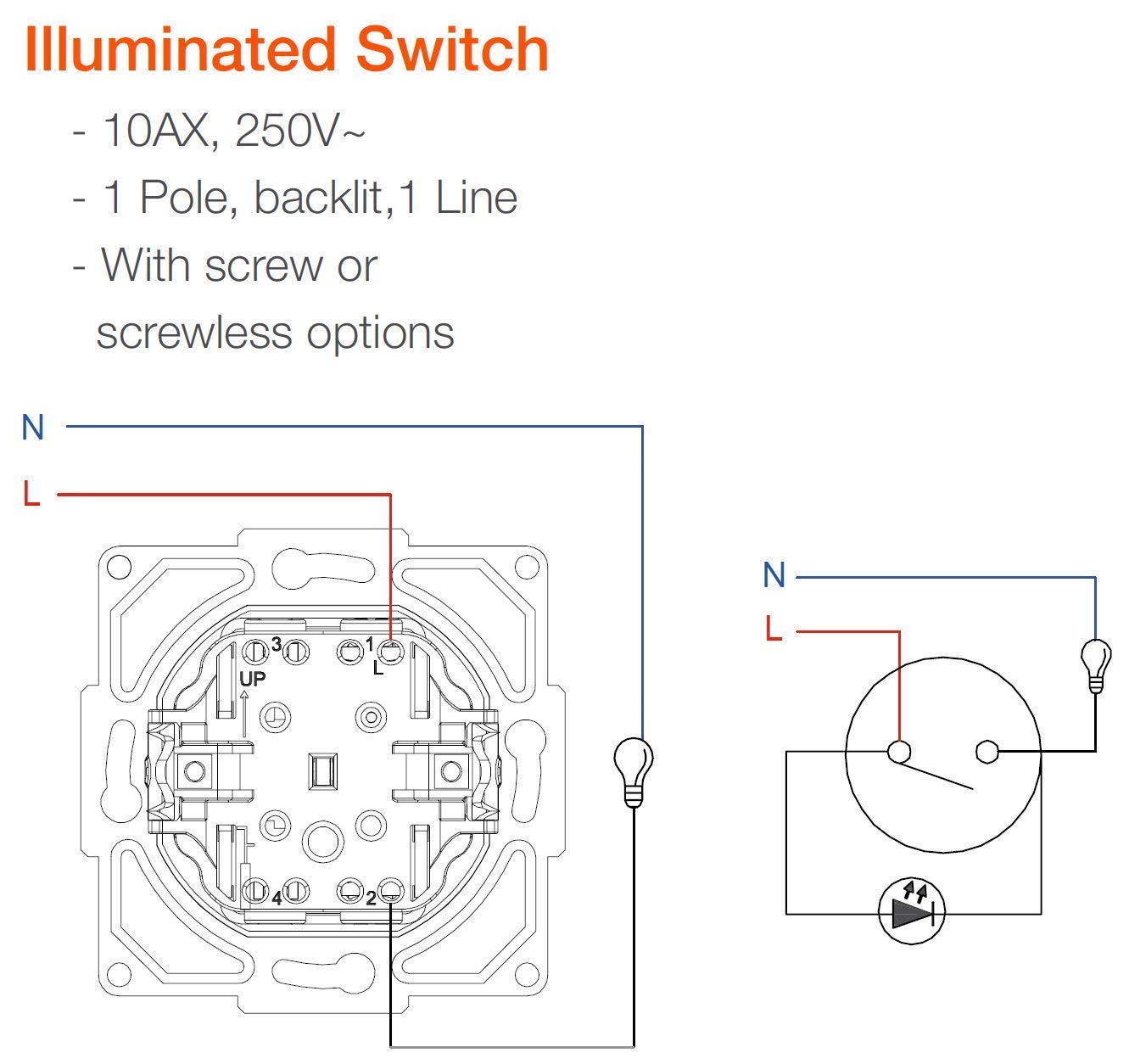 - 6er PACK - Taster mit Licht-Symbol + LED-Beleuchtung - aus der Schalterserie G1 reinweiss