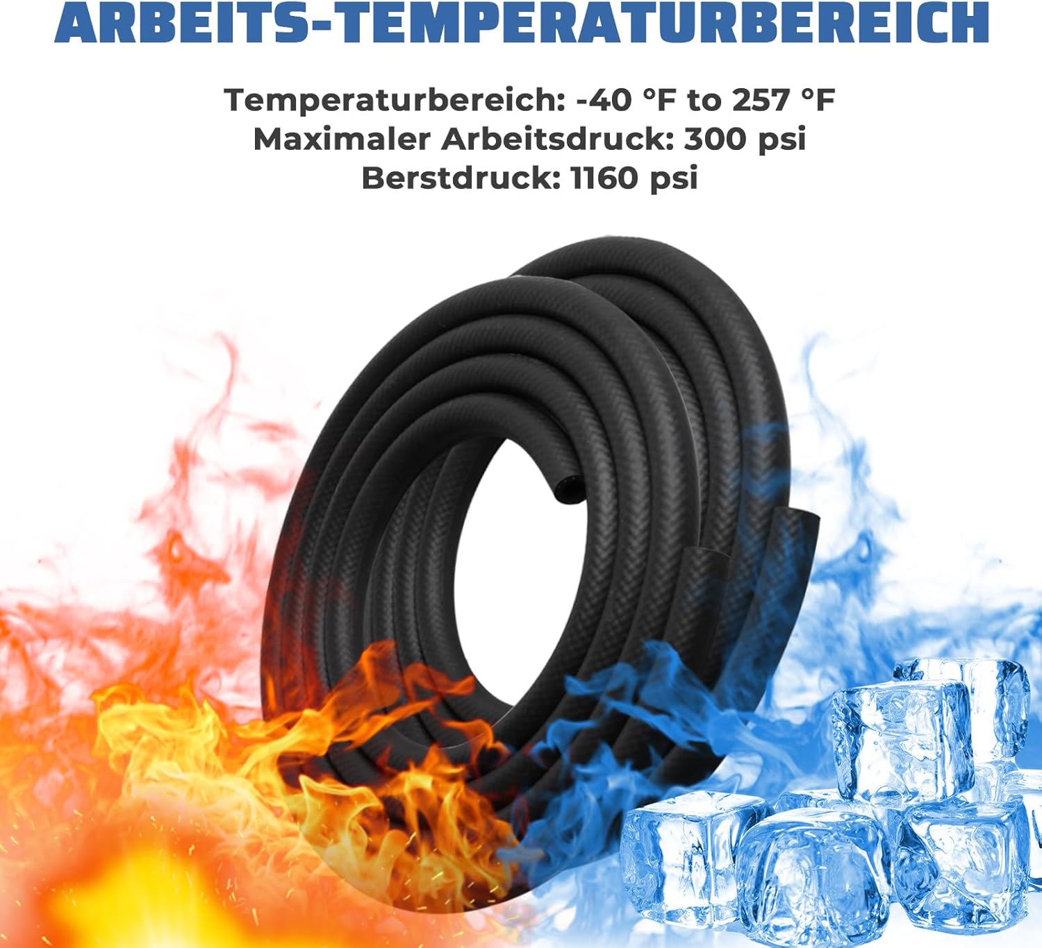 - 【Vorteil】Die Rohrwand ist 3-lagig verdickt. Aufgeteilt in drei Schichten: Innenrohr, Aussenrohr und mittlere Verstärkungsschicht. Die Innen- und Aussenrohre sind aus Gummi und die mittlere Verstärkungsschicht ist geflochtener Nylondraht. Das dicke