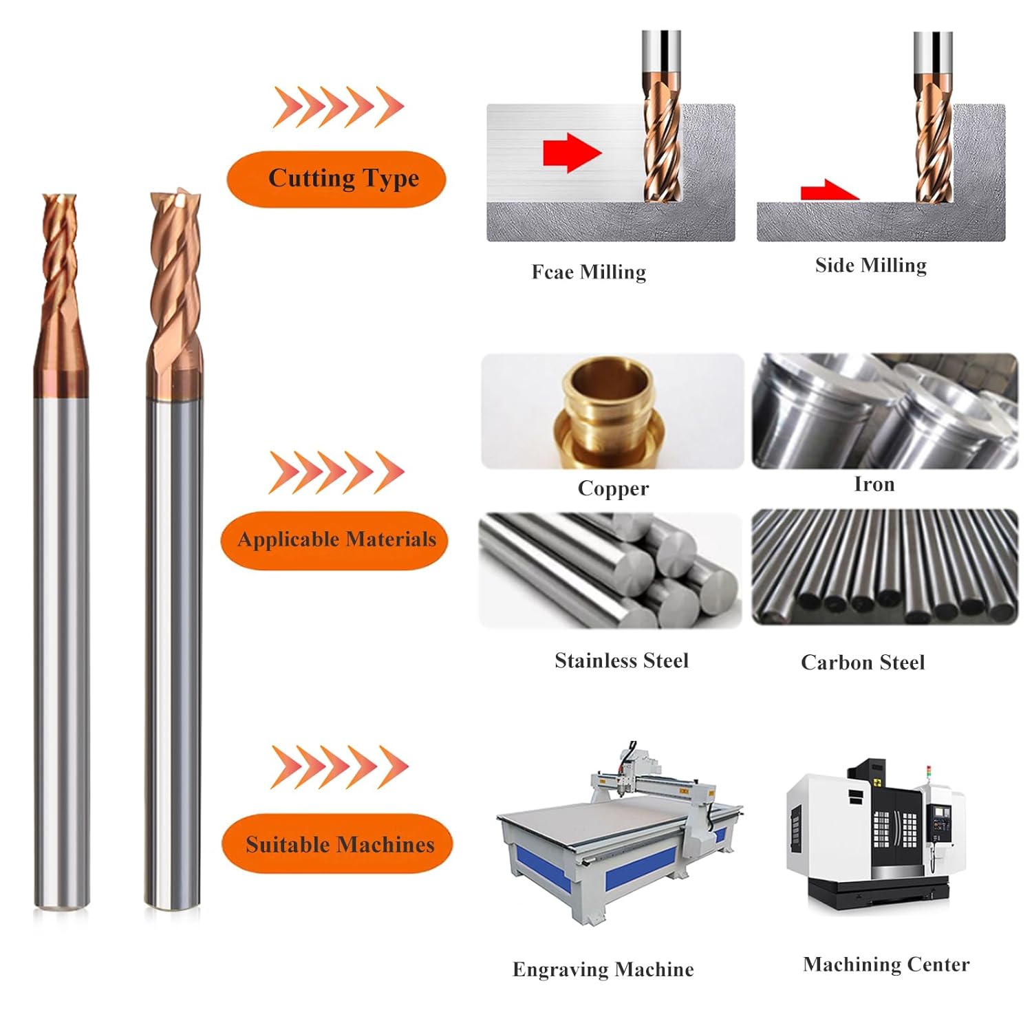 - Merkmale: 4-Nuten-Schaftfräser erzeugen ein viel feineres Finish als andere Nutenwerkzeuge, ideal für das Rand- und Fertigfräsen, können direkt oder fein zur Wärmebehandlungsform verarbeitet werden.Bitte wählen Sie Cuttning Lengtht 2-3mm dicker als