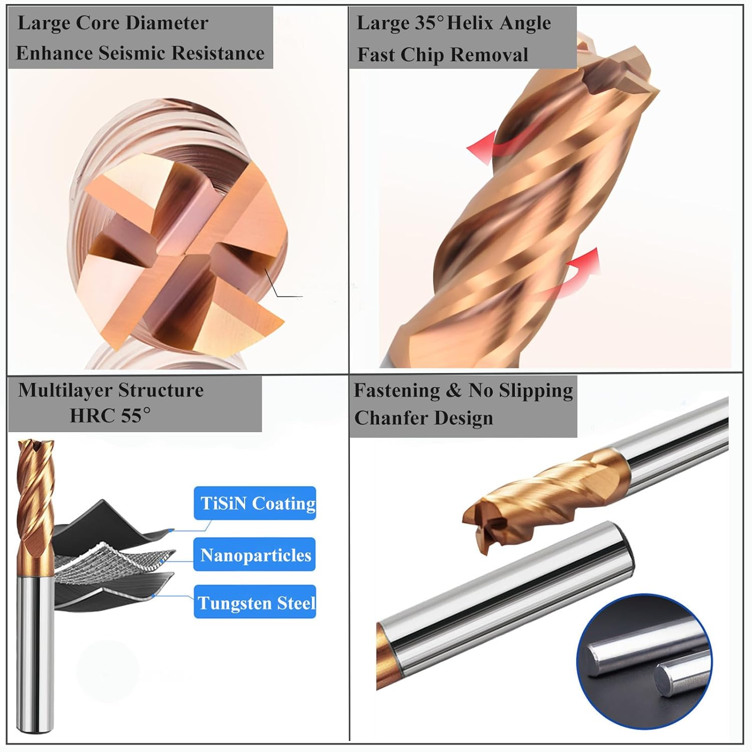 - CNC Hartmetall Fräser Material: Vollhartmetall/Wolframstahl, Oberfläche Material: TiSiN, HRC: 55, Schneidrichtung: rechtsschneidend.