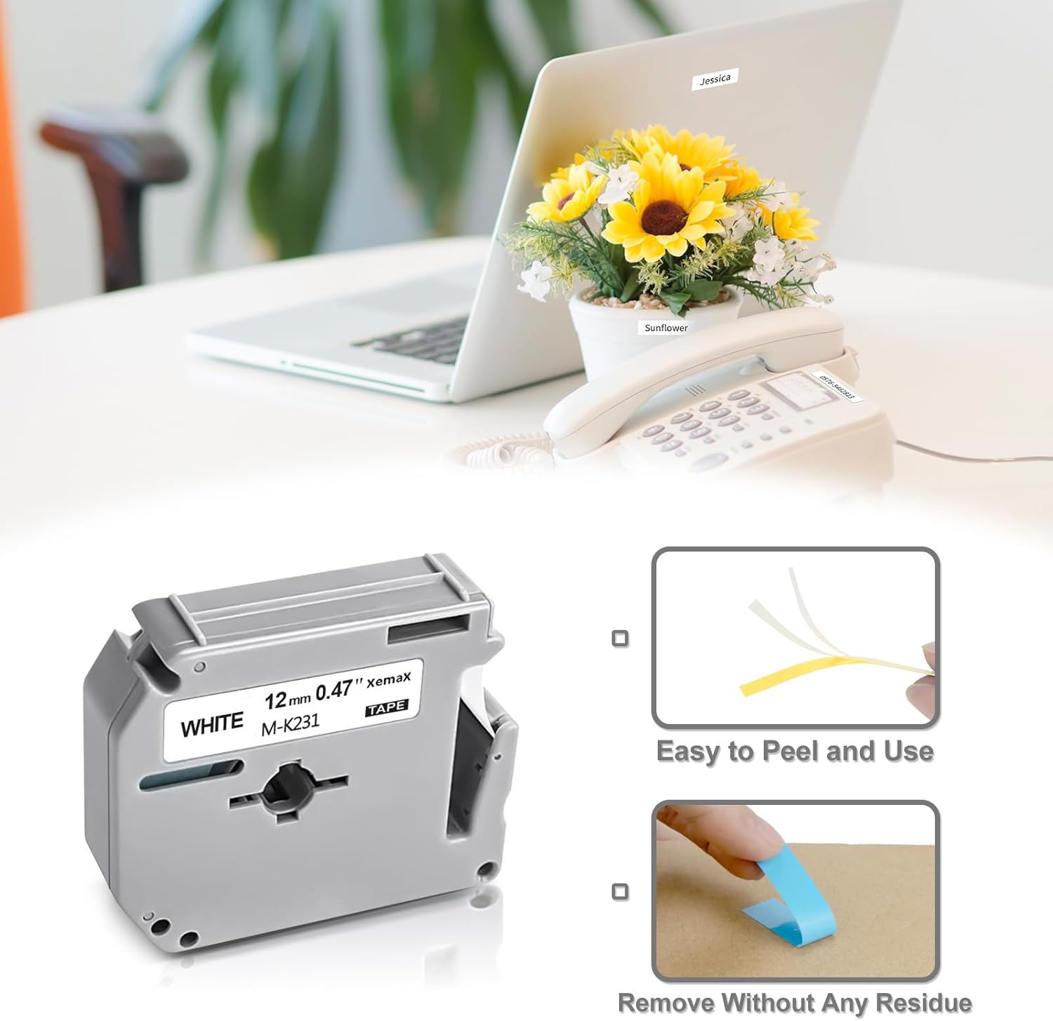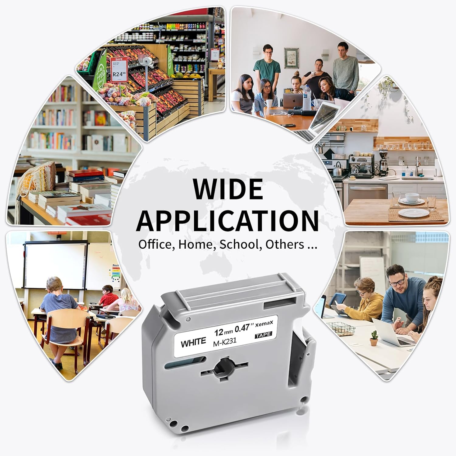 - Paket: (Nicht Laminiert) 6 x Kompatibel Brother PT90 M K231 MK 231 Schriftband; Breite: 12 mm (0,47''); Länge: 8 m (26,2'); Farbe: Schwarz auf Weiss