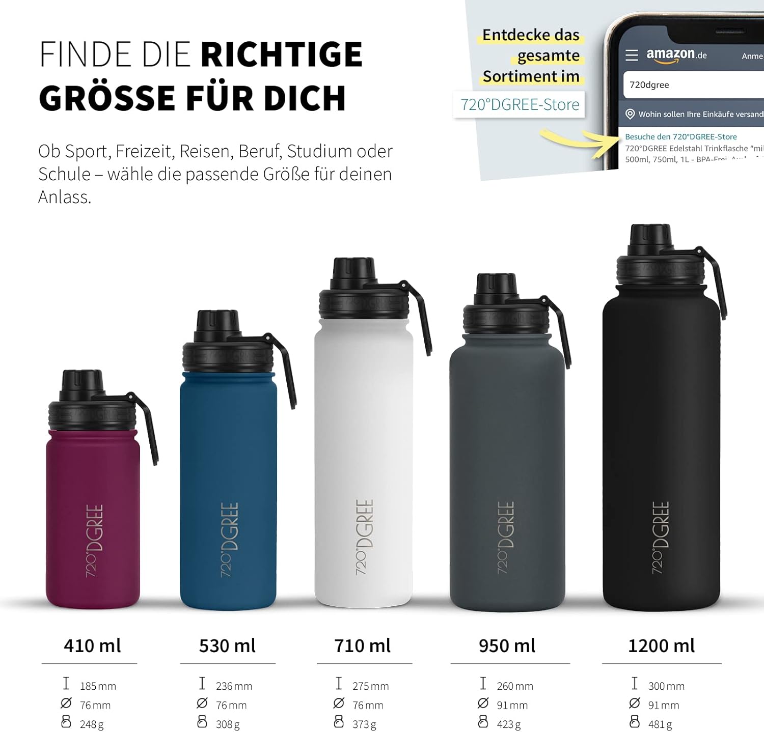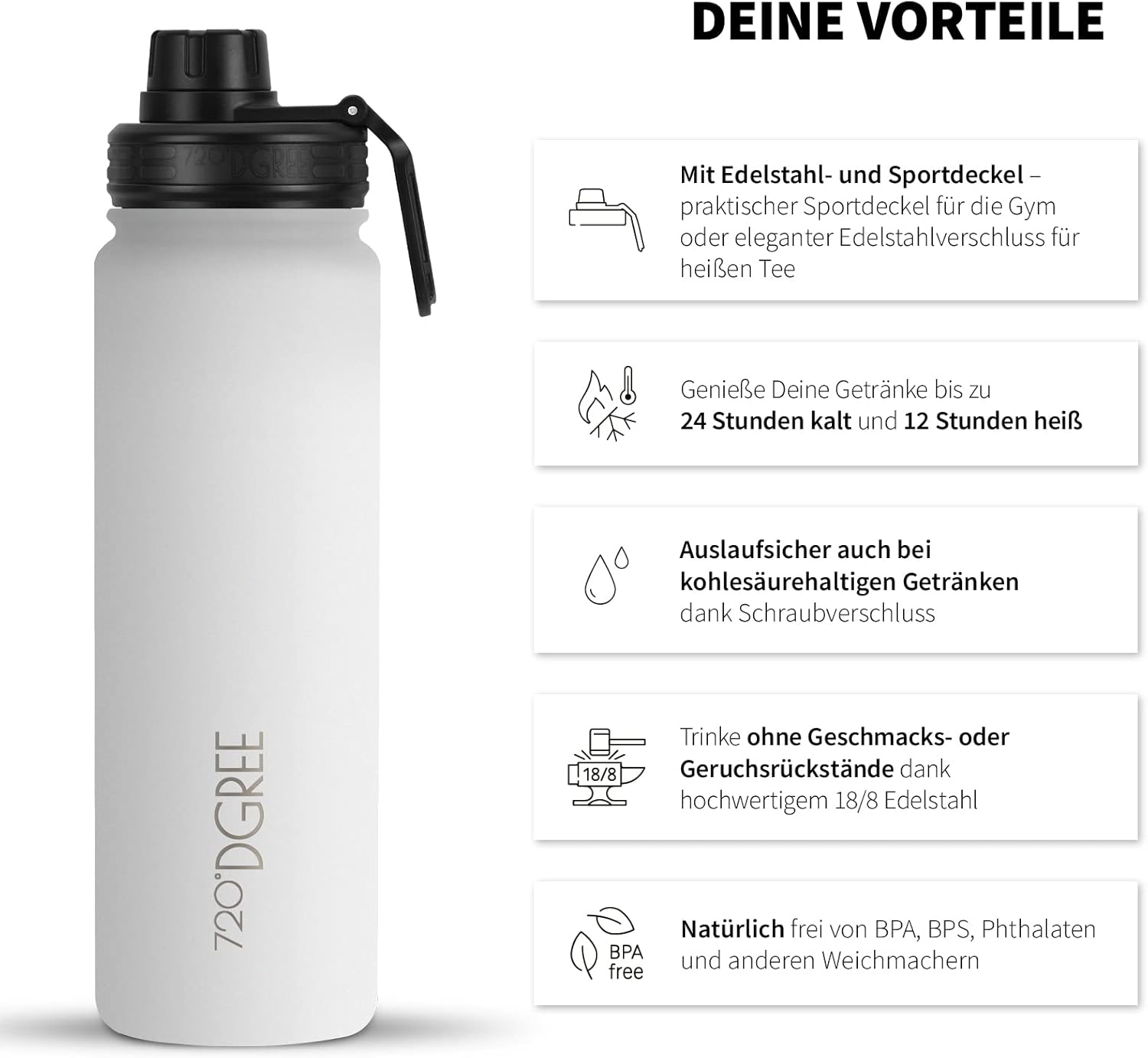 - ✔ TRINKE ENDLICH GENUG & FÜHL DICH BESSER - Du willst deine besondere 720°DGREE Trinkflasche IMMER bei dir haben. Denn dank KeepDGREE-TECHNOLOGY bleiben deine Getränke bis zu 12H HEIss / 24H KALT - Doppelwand Vakuum DESIGN auf höchstem Niveau. Mit