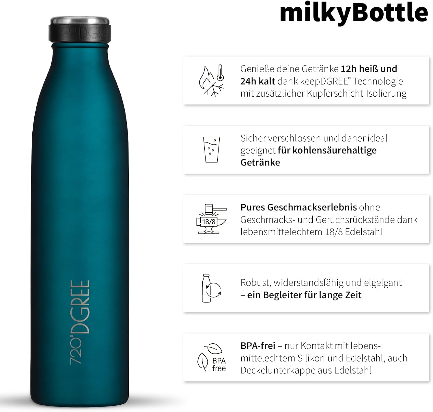 - ✔ DU BIST 100% ZUFRIEDEN ODER GELD ZURÜCK - Sei dir deiner Investition sicher. 720°DGREE steht für HERAUSRAGENDEN DEUTSCHEN KUNDENSERVICE mit tausenden GLÜCKLICHEN KUNDEN. Falls du die "milkyBottle" nicht absolut lieben solltest, schicke diese